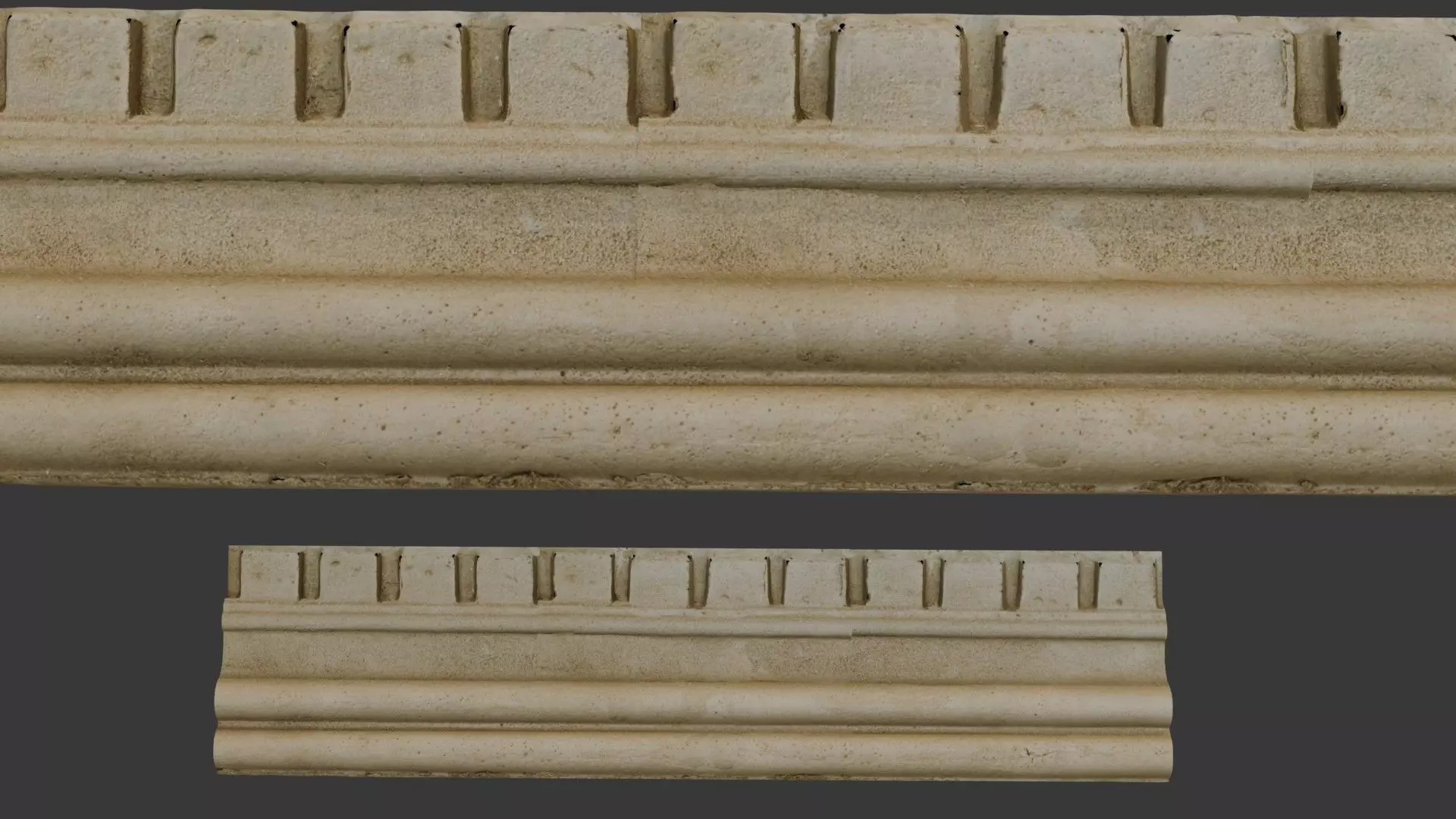 High-resolution 3D scan of a classical stone cornice with detailed molding and weathered textures. Ideal for historical reconstruction, game environments, architectural visualization, and 3D printing. The scan captures realistic surface details with 4K PBR textures, ensuring high-quality rendering.