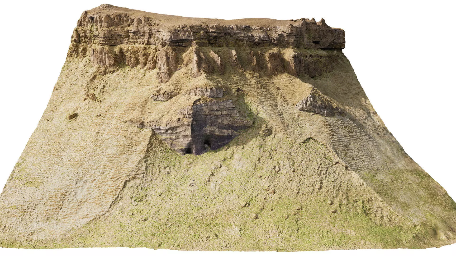 This detailed 3D scan of an massive cliff mountain side, was captured in neutral lighting to ensure accurate surface detail and realistic color tones. The model has been carefully cleaned, decimated, and optimized for both real-time and offline rendering workflows