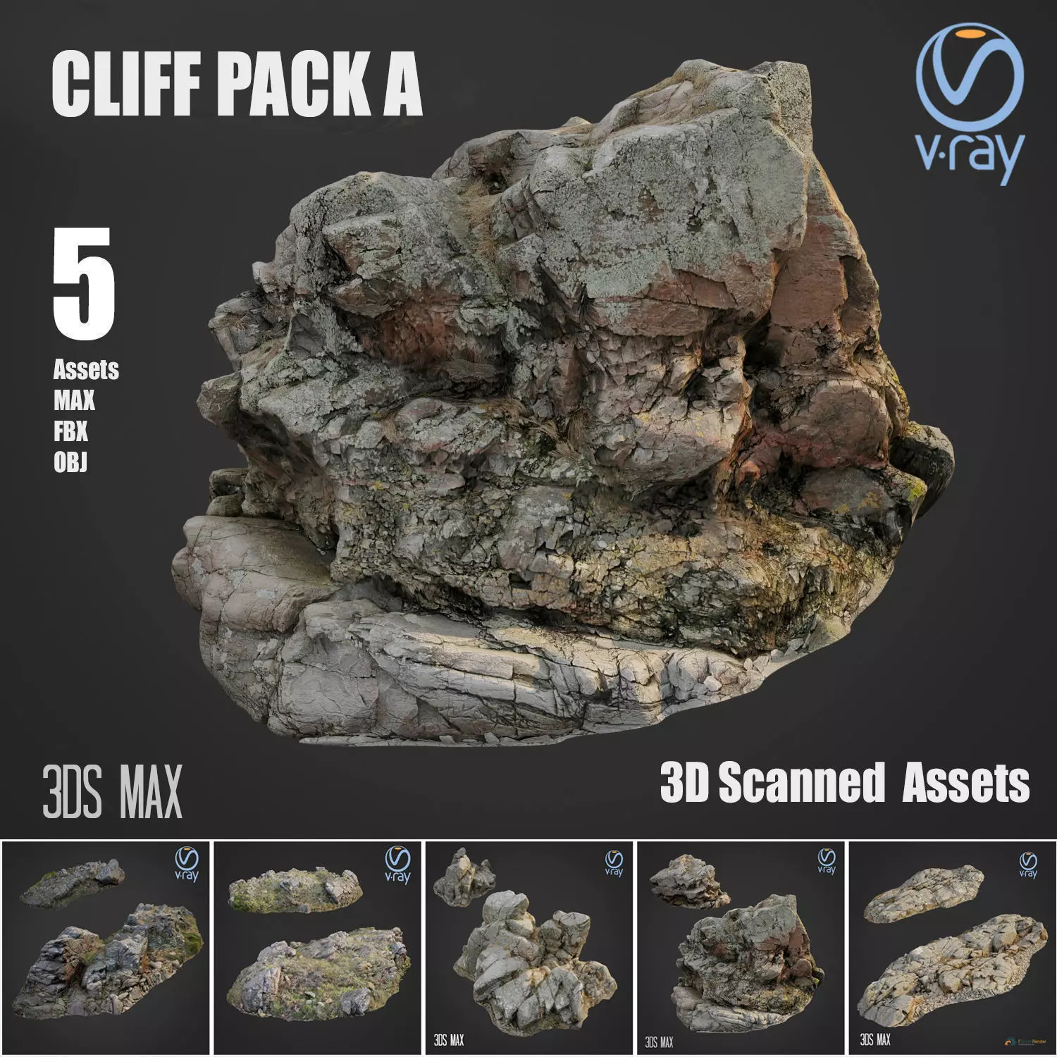 pack include:3d scanned rock cliff A, Poly 14259 Vert 14450 MAX2017 + FBX & OBJ3d scanned rock cliff B, Poly 7029 Vert 7139 MAX2017 + FBX & OBJ3d scanned rock cliff C, Poly 19386 Vert 19526 MAX2017 + FBX & OBJ3d scanned rock cliff D, Poly 23649 Vert 23793 MAX2017 + FBX & OBJ3d scanned rock cliff E, Poly 37916 Vert 38259 MAX2017 + FBX & OBJ