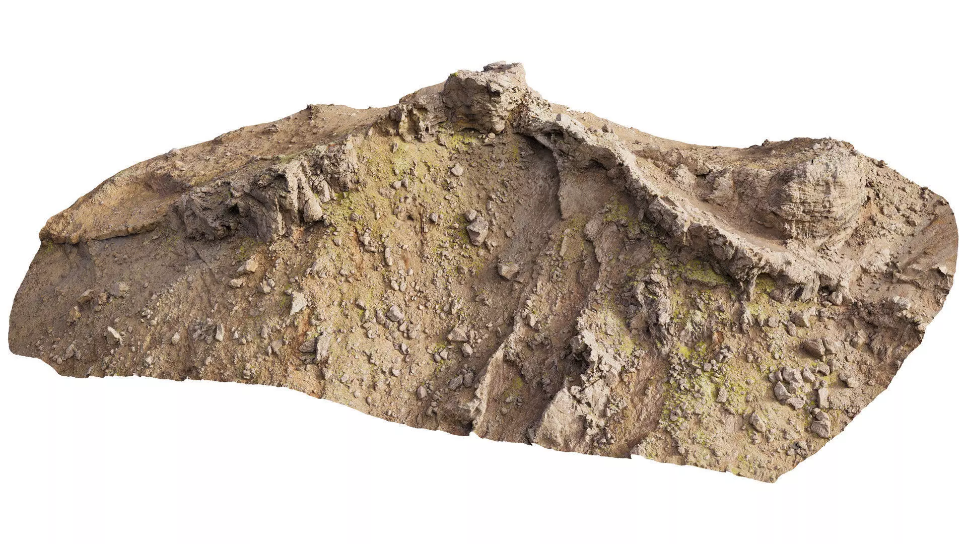 Cliff Peak ScanThis highly detailed 3D scan of a cliff formation, was captured in neutral to ensuring accurate surface detail and realistic color tones. The model has been carefully cleaned, decimated, and optimized for real-time and offline rendering workflows.
