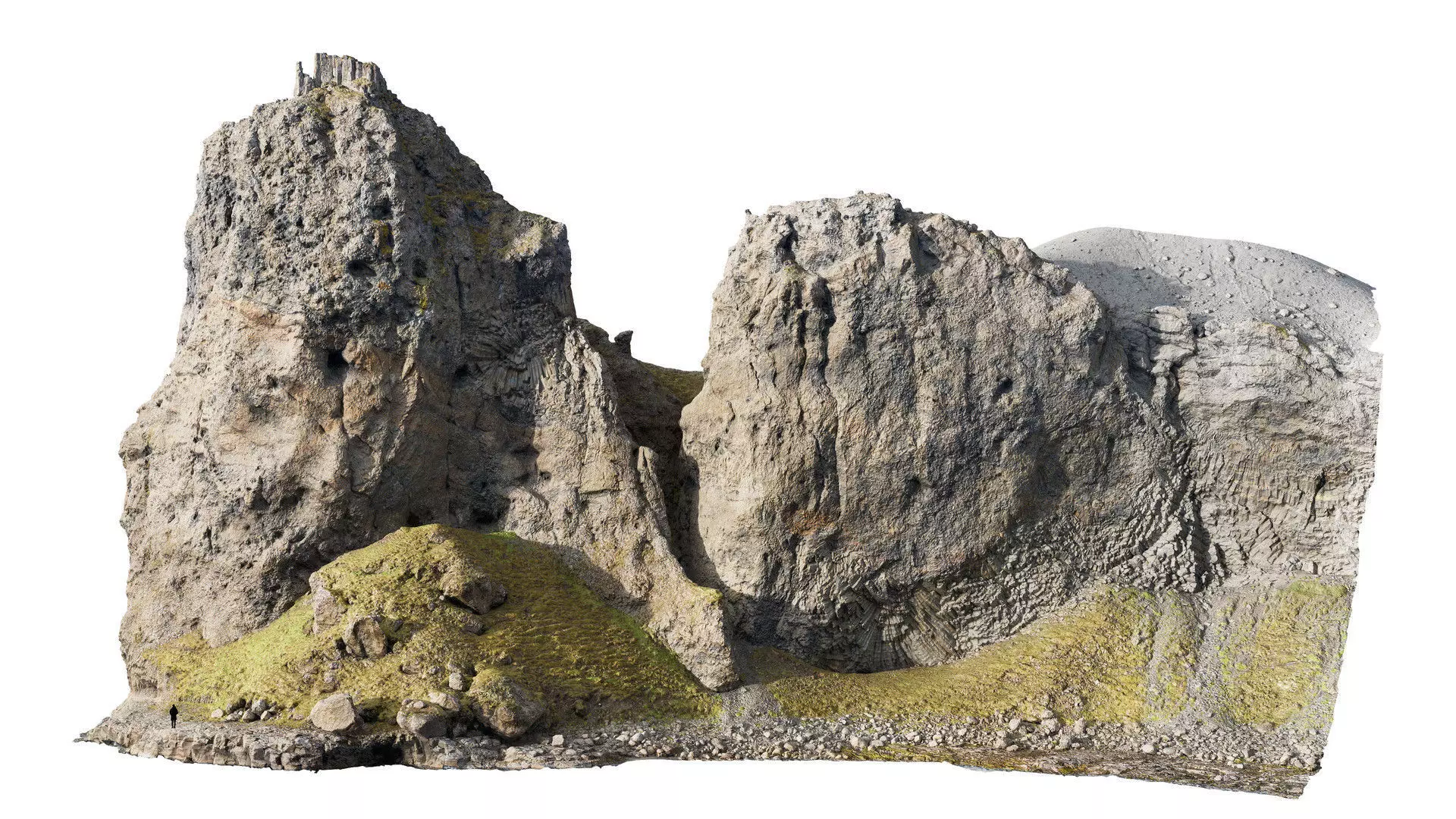 This detailed 3D scan of an Icelandic cliff peak formation -, featuring sheer basalt cliffs was captured in neutral lighting to ensure accurate surface detail and realistic color tones. The model has been carefully cleaned, decimated, and optimized for both real-time and offline rendering workflows