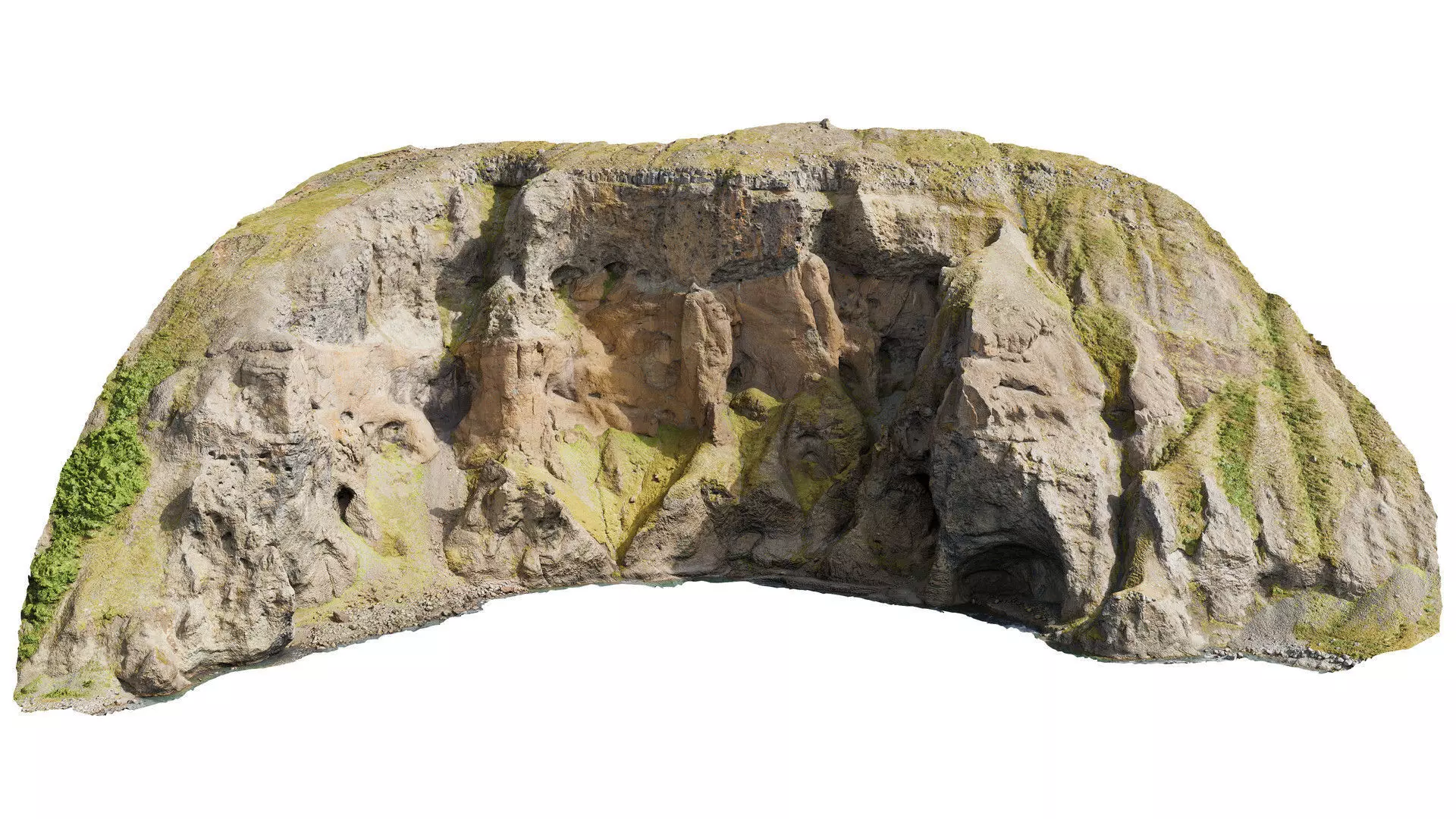 This detailed 3D scan of an Icelandic cliff peak formation -, featuring sheer basalt cliffs was captured in neutral lighting to ensure accurate surface detail and realistic color tones. The model has been carefully cleaned, decimated, and optimized for both real-time and offline rendering workflows