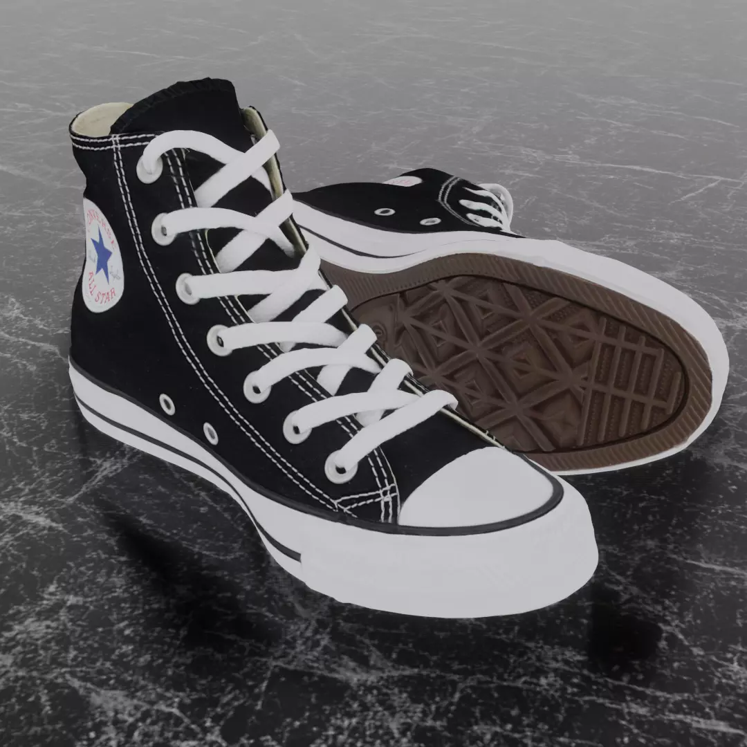 Converse shoes are asymmetric (due to the logo), but the file contained two (duplicated) left shoes. Also does not contain normal maps or PBR textures. A little bit expensive considering alal that.