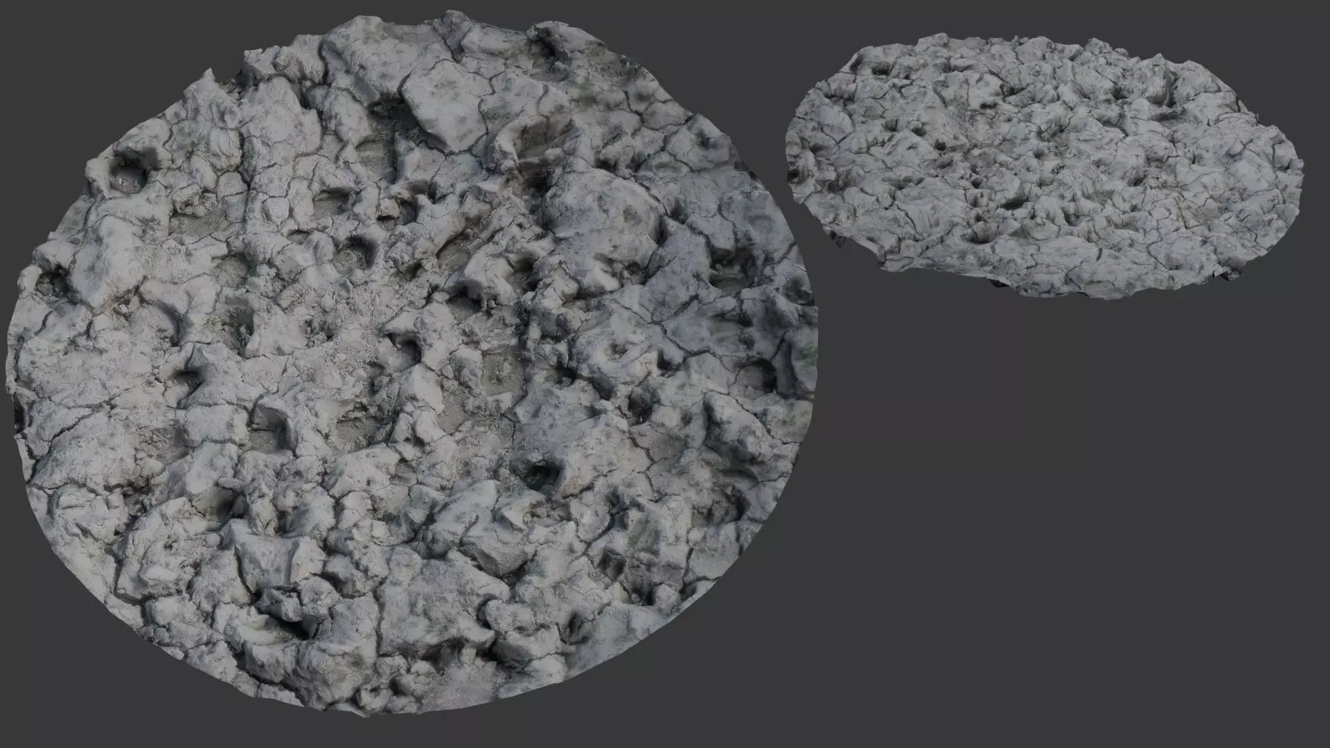 A detailed 3D scan of cracked and weathered mud ground, perfect for use in natural or post-apocalyptic environments. This highly realistic texture captures the intricate details of dry, cracked earth, making it ideal for creating realistic outdoor scenes in games, movies, and architectural visualization.