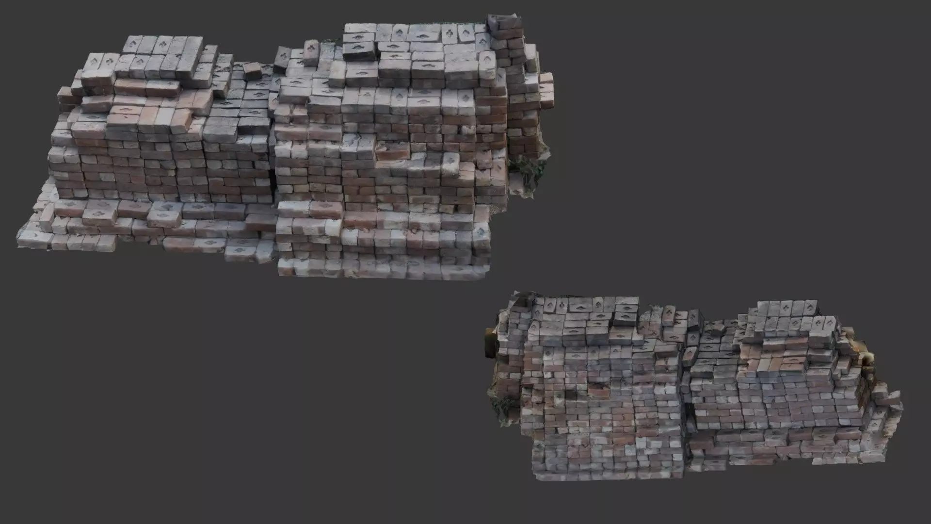 Crumbling Brick Wall Low-poly 3D model