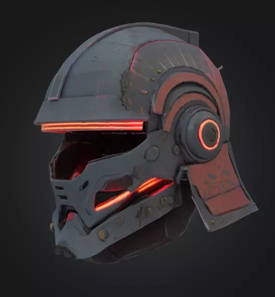 This cyberpunk samurai helmet combines traditional armor silhouettes with modern sci-fi detailing. Designed with game development in mind, the model features: