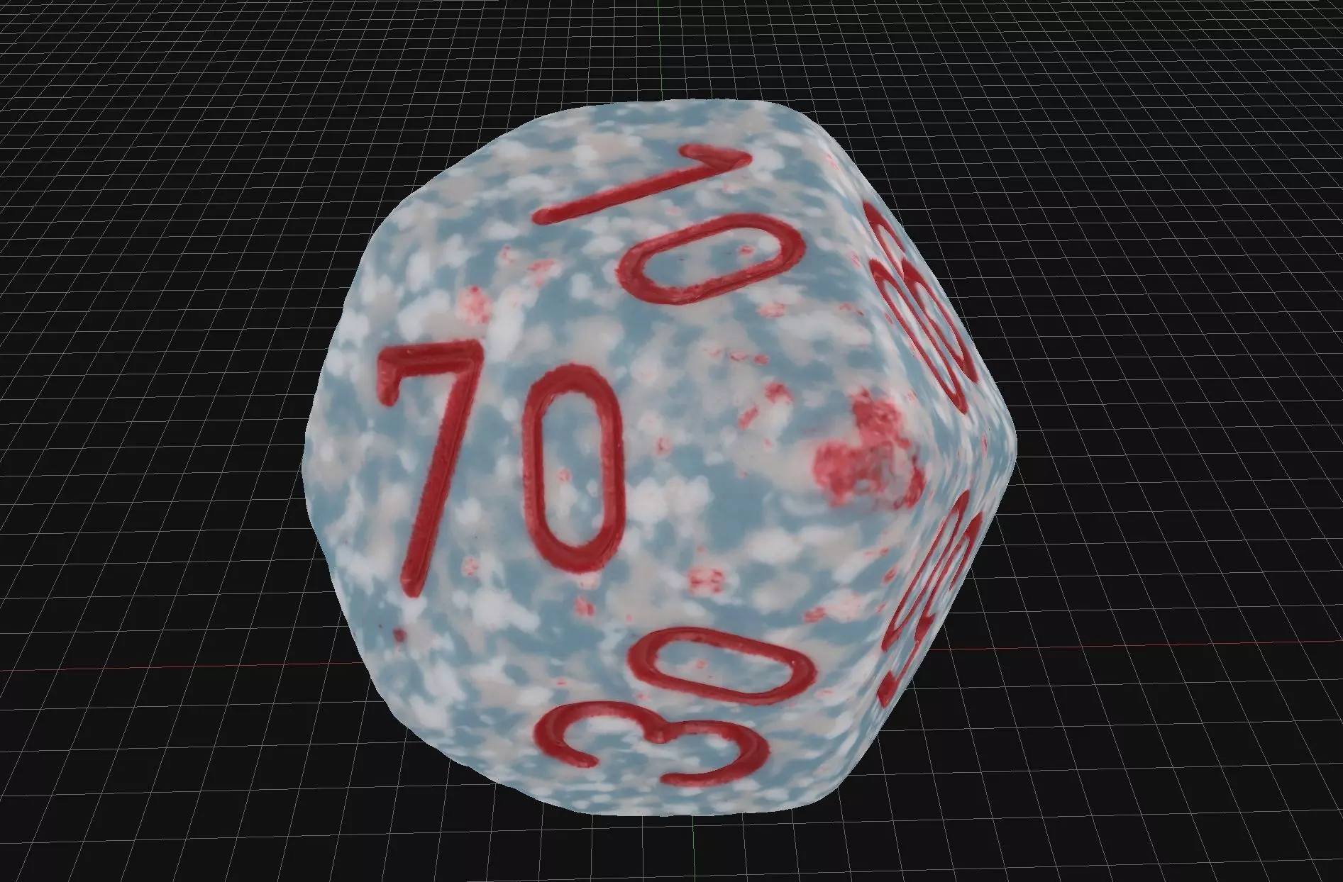 DnD dice with light colors and red numbers.This includes a hi-polygon count model and a low-polygon count model.For information about the models themselfs, there are screenshots with details, like polygon count and other info.