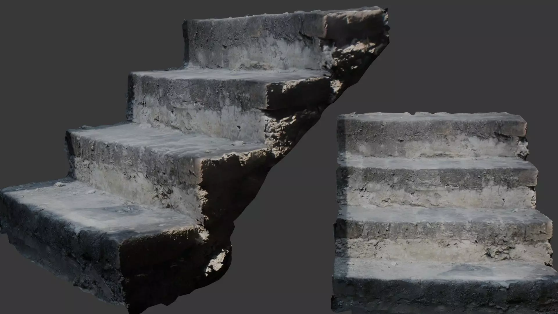 This 3D model features a worn and weathered concrete staircase with chipped and crumbling edges, showcasing a realistic portrayal of urban decay or abandoned settings. Perfect for adding authenticity to game environments, film production scenes, or architectural visualizations, this model offers high-detail 4K PBR textures and is available in multiple formats including FBX, GLB, OBJ, STL, and Blend. Whether you're creating a dystopian setting, abandoned building, or any urban scene, this staircase adds a gritty, lifelike element to your project.