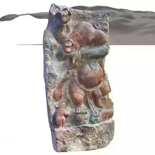Introducing the stunning 3D model of the beloved Vinayaka, Ganesha, or Ganapati - a popular Hindu god known for his association with wisdom, intellect, and new beginnings. This 30cm tall and 8cm wide statue is intricately molded from a granite stone, featuring a raw and rough texture on one side and a dancing Ganesha on the other.