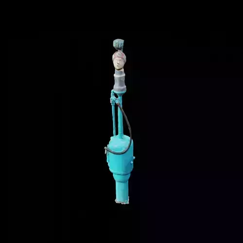 This is a 3d scan of a decorative looking fuel pump with a head sculpture no longer in use along a pedestrian road in Portmerion in Wales top done with Polycam on a Google Pixel 7