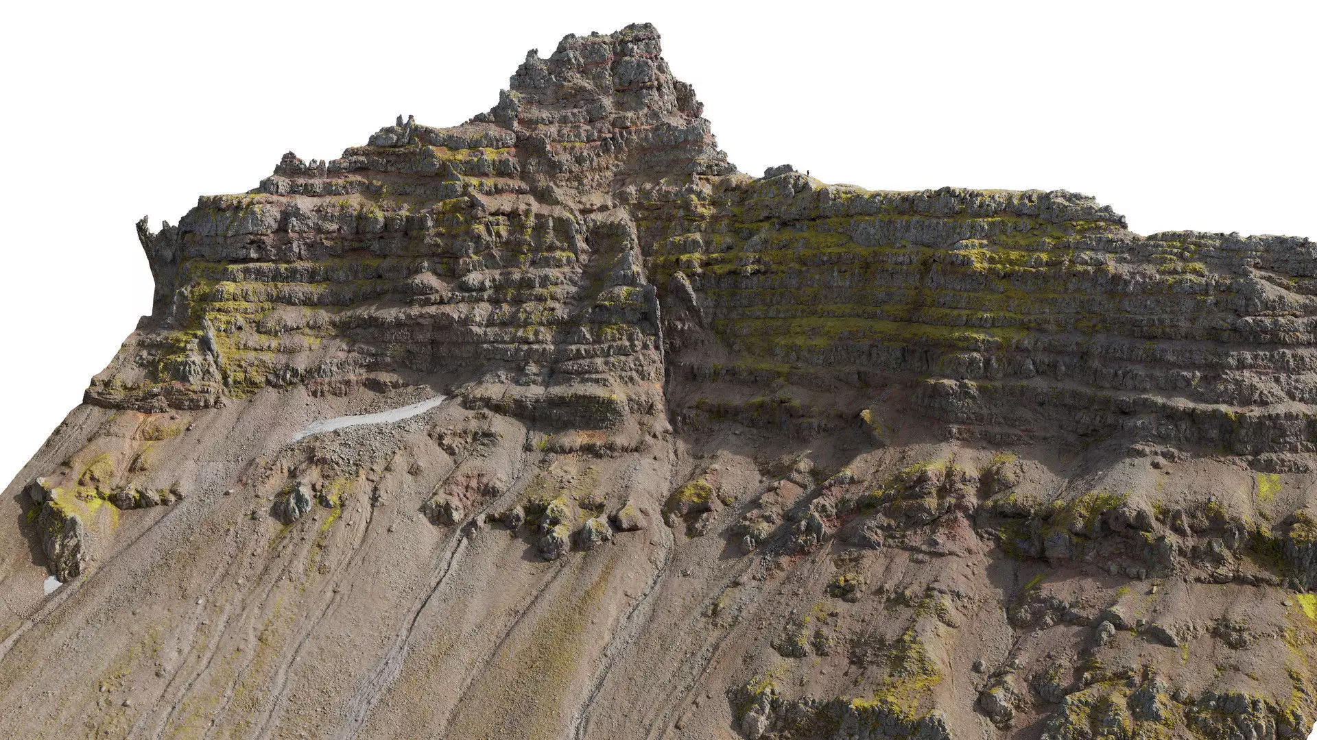 Faroe Mountain Cliff - PBR ScanThis detailed 3D scan of an massive Faroe cliff mountain, was captured in neutral lighting to ensure accurate surface detail and realistic color tones. The model has been carefully cleaned, decimated, and optimized for both real-time and offline rendering workflows.