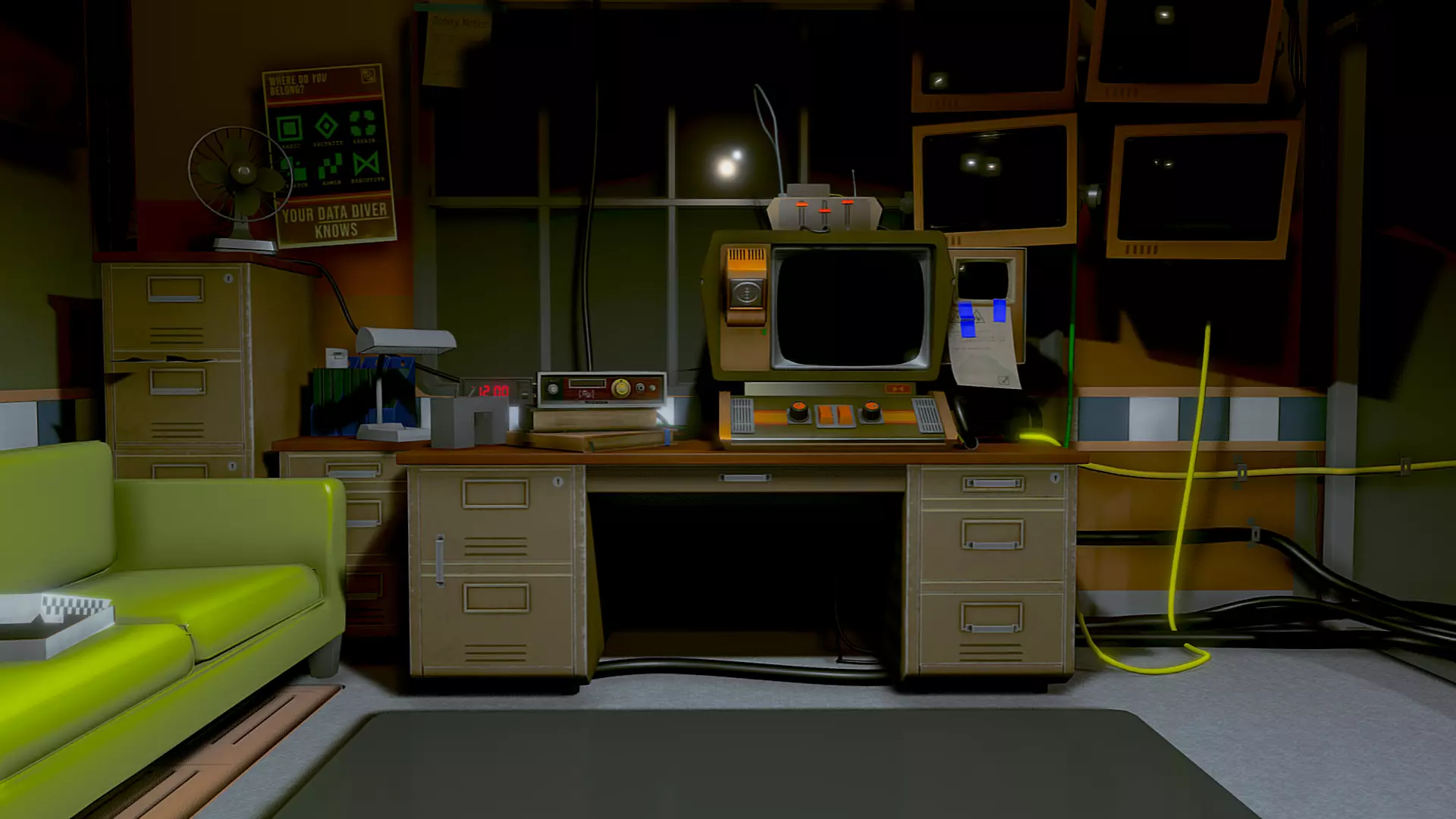 In front of you sits a decaying multi-screen console, still barely functional. Eight cracked CRT monitors cycle through the hospital’s failing camera feeds, often glitching out with static, corrupted images, or showing things that shouldn’t be moving. Some feeds don’t work at all—and you wonder if that’s a blessing.