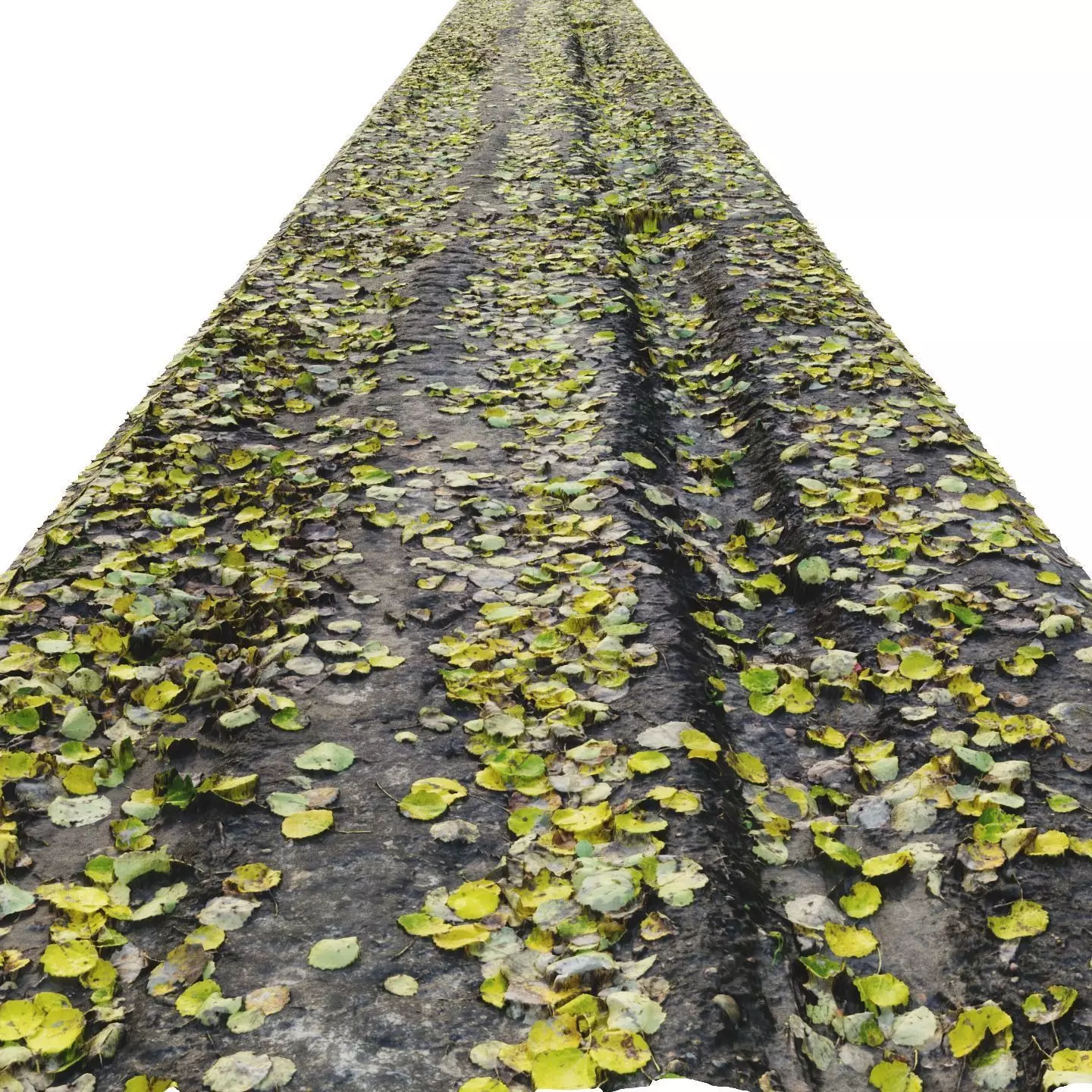 Autumn forest road 02 with aspen foliage. A small track from the wheels. 12 meters. 16K PBR material