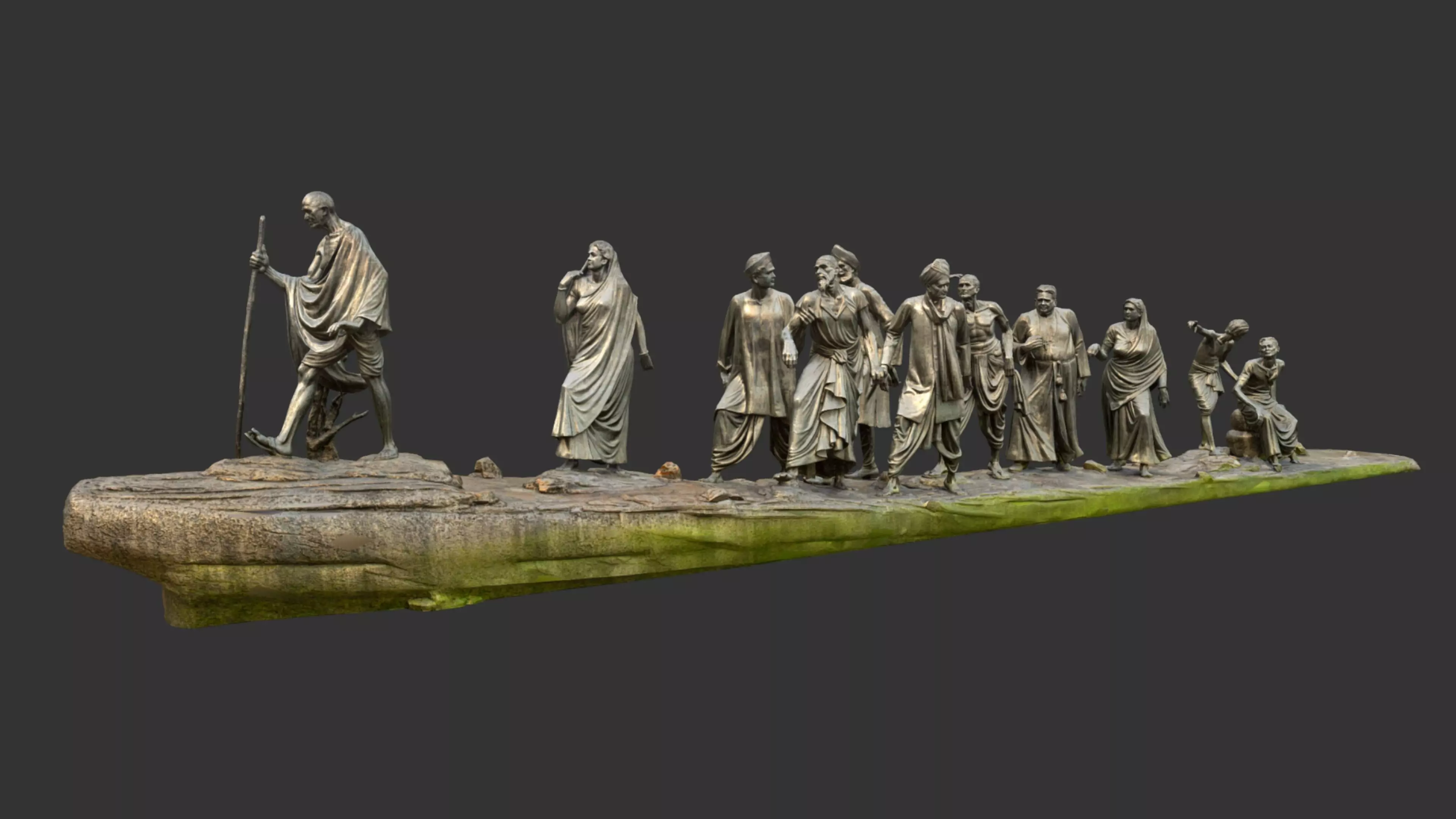 Gayarh murti (11 statues)This massive black sculpture is sheer poetry in stone. The sculpture, by Devi Prasad Roy Choudhary, depicts the famous Dandi March led by Mahatma Gandhi in 1931 against oppressive salt taxes imposed by the British regime. This sculpture is locate outside President House can be seen by visitors entering New Delhi.This sculpture is dedicated to millions of Indian who participated in freedom struggle.