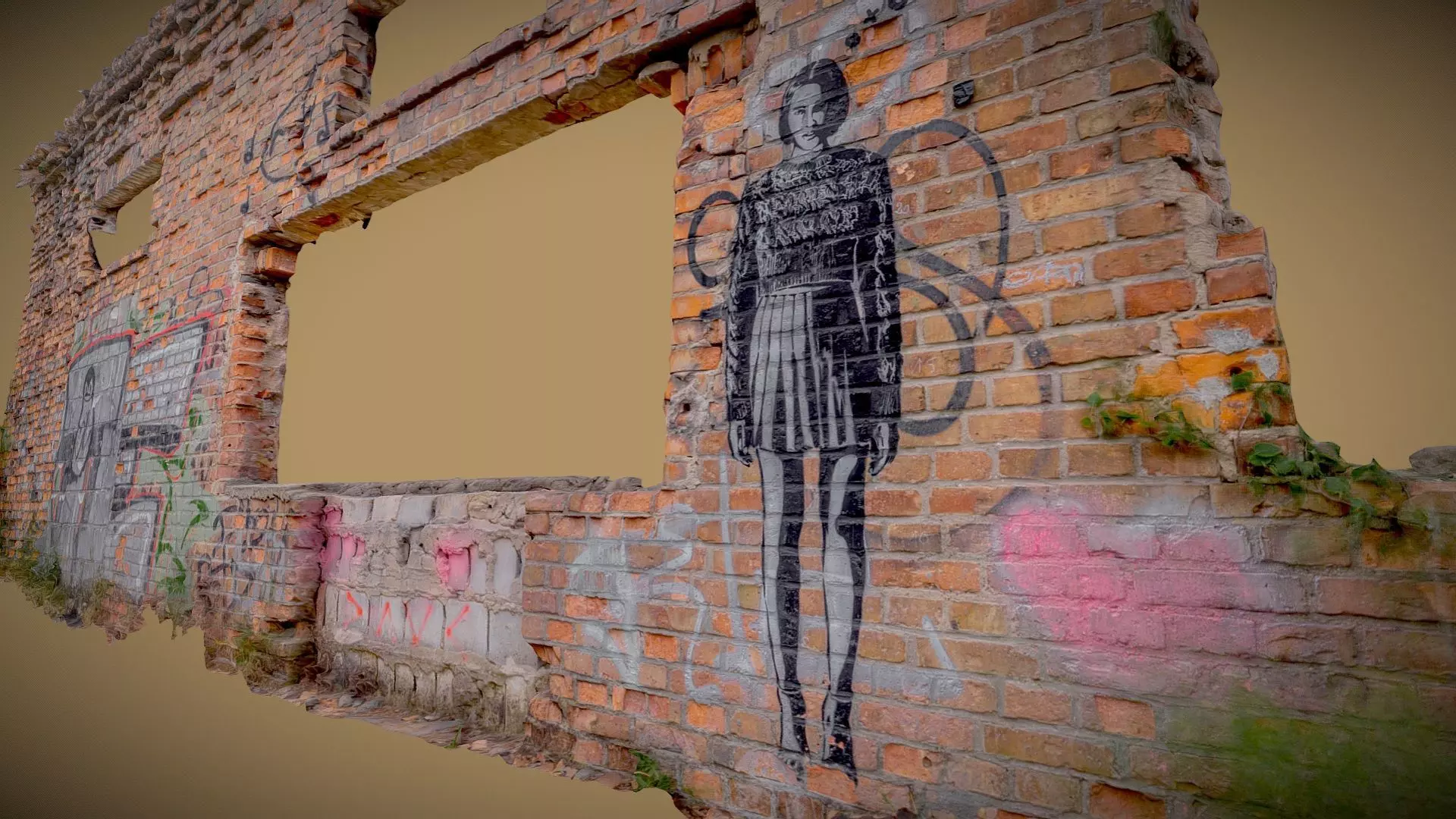 Girl on the brick wall of the demolished factory 3D model