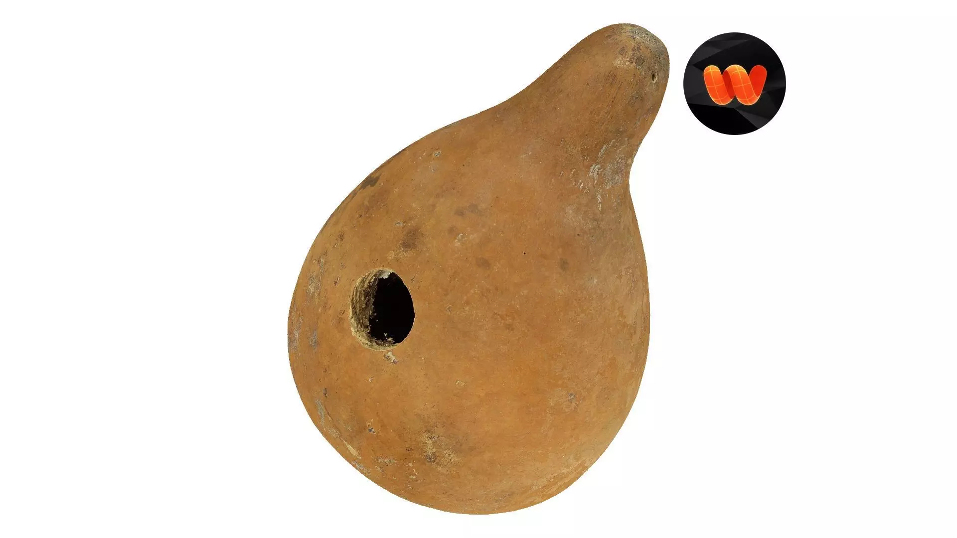 A calabash gourd birdhouse for nesting birds. This raw 3D scanned model is indicated for those who need high detail mesh and high definition textures, allowing even extreme closeups. It is especially suitable for Films, TV, VFX, Games, VR and AR.