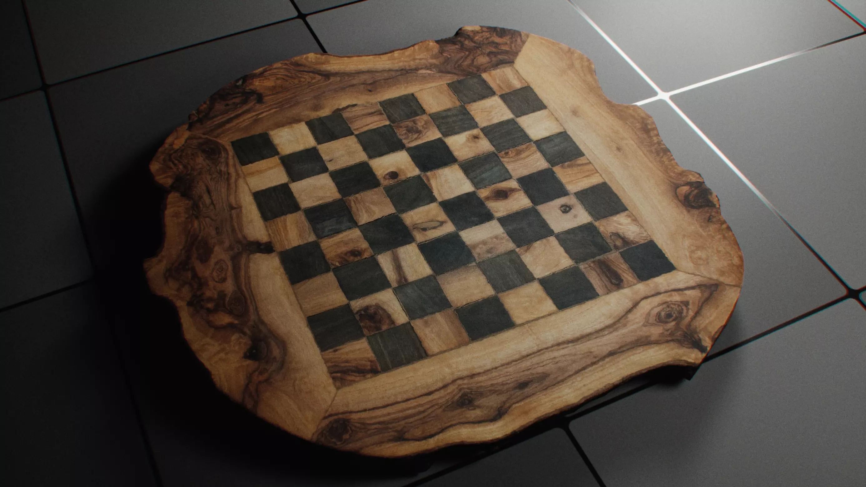 Photoscan of unique handmade wooden antique chess board