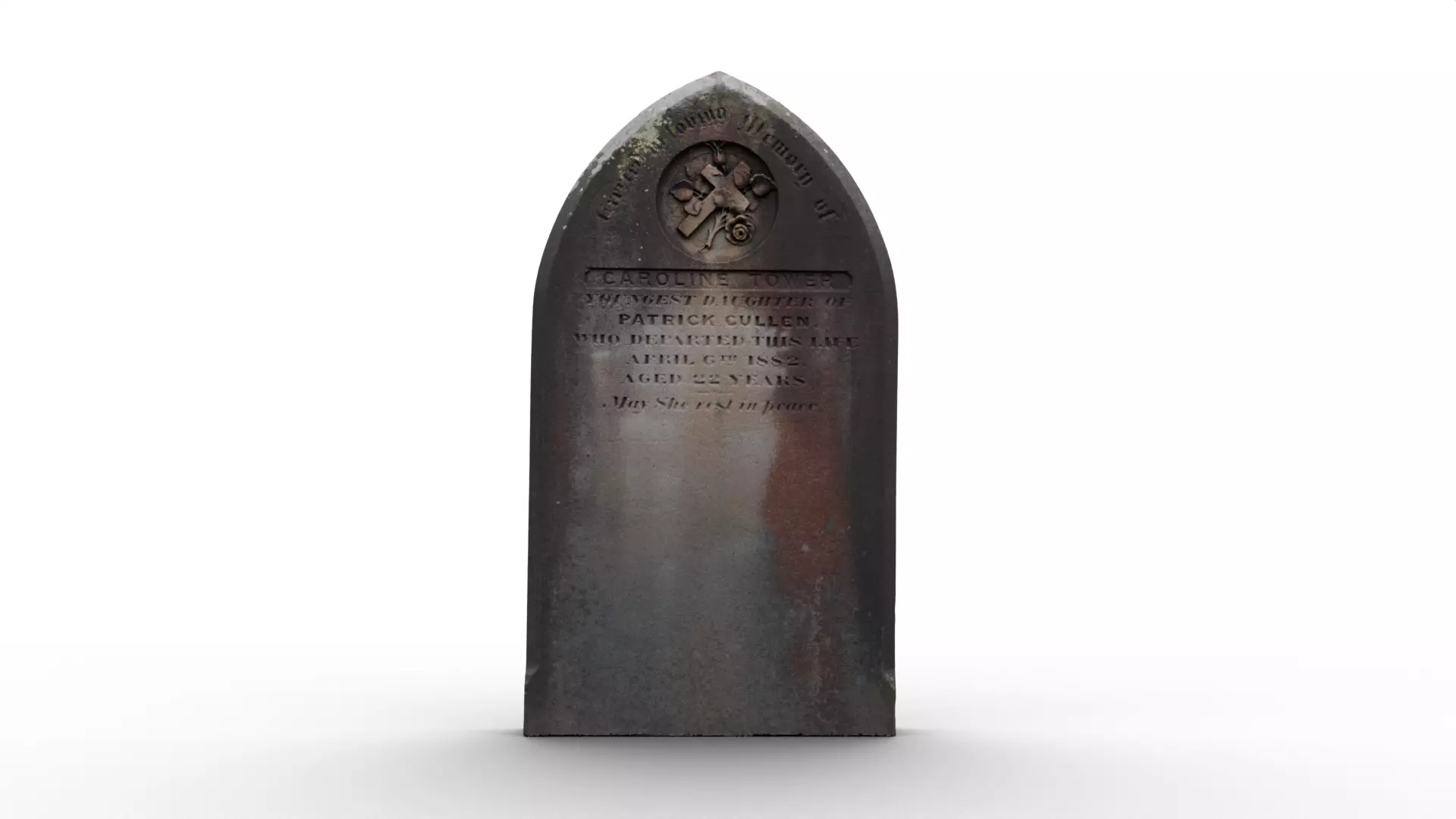This highly detailed old headstone was captured using cross-polarized photogrammetry to ensure maximum surface accuracy and texture fidelity. The scanning process removes reflections and enhances fine details, preserving the weathered stone, engraved inscriptions, and natural imperfections with unmatched precision.