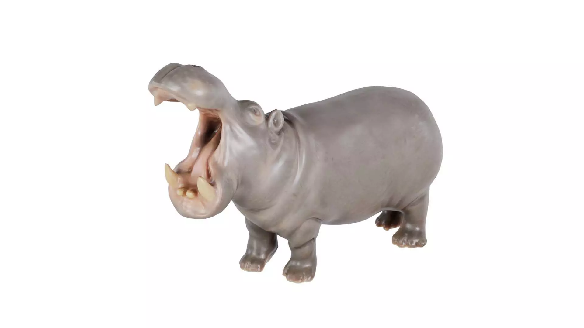 3D scanned model featuring a hippo figurine with its mouth open. This model, hippo, has been created using photogrammetry from a real world object.The raw scan data has been cleaned, retopologized and UV-unwrapped using Zbrush. The result is a low poly mesh with baked maps. The .obj and .mtl are configured so that maps will load automatically in the shader (tested in Blender). In addition, a Blender scene is provided with the model and shader already set up for rendering and export. Detailed information below: