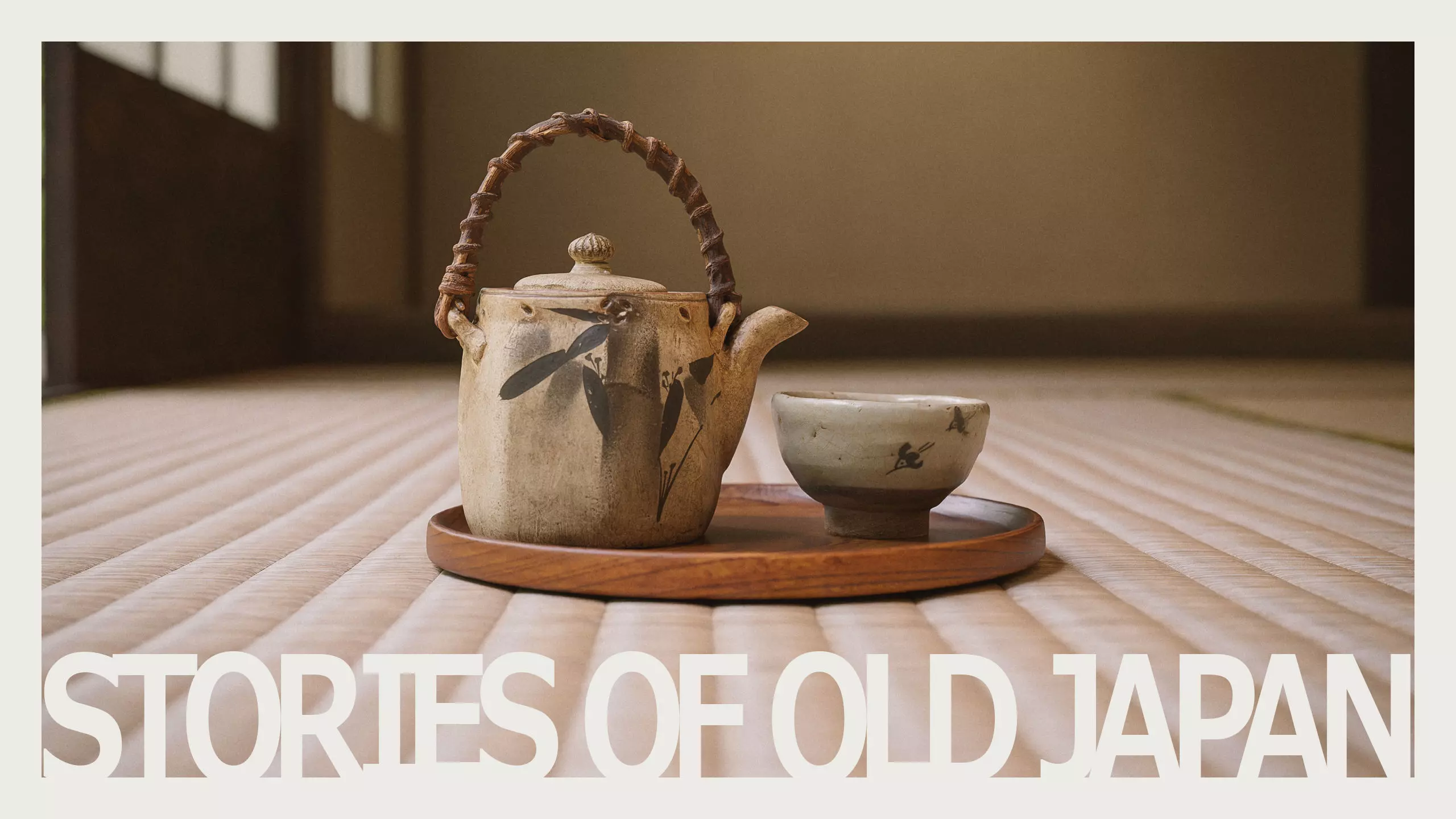 This small ceramic set featuresa rustic dobin and a guinomi cup.The dobin has a dry, unglazed surfacewith a simple bamboo motif.Its quiet presence suggeststhe beauty of age and time.The guinomi is finished in soft white glaze,with fine crackle patterns across the surface.Two lively birds are delicately painted,adding warmth and gentle character.Displayed together on a wooden tray,the set feels calm and contemplative.