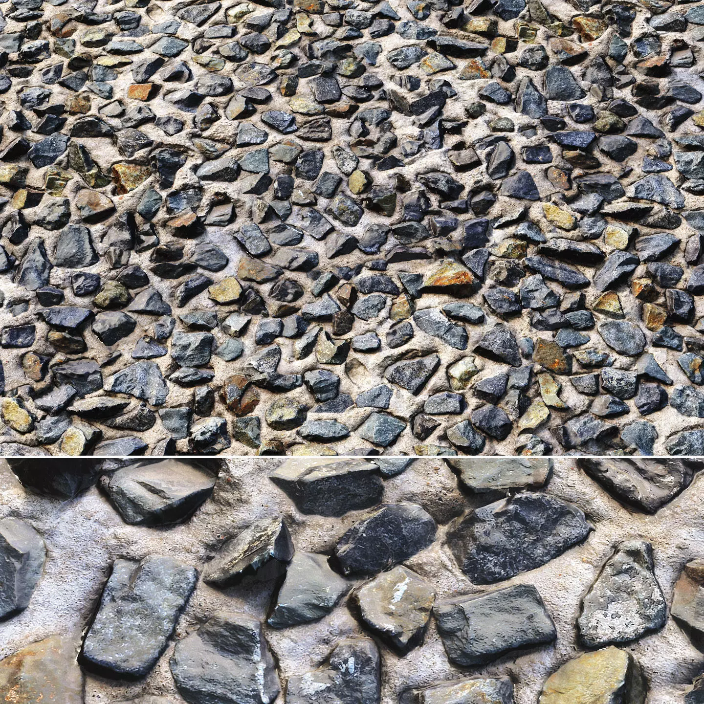 Blue stones of small size, half-sunk in a cement-sand mortar. The model is made using seamless material and an optimized polygonal mesh.