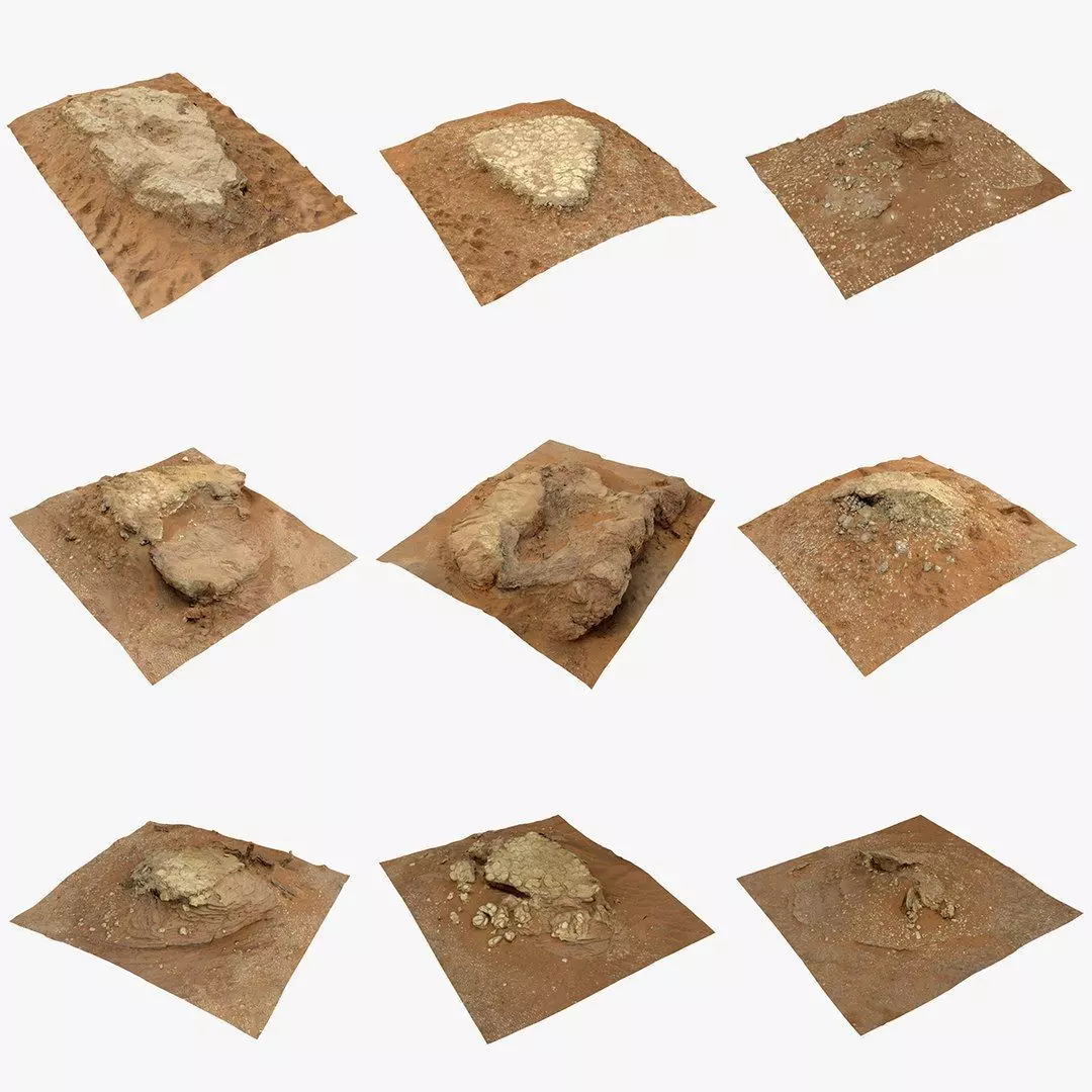 A collection of 9 3d photogrammetry scans of desert rock formations.