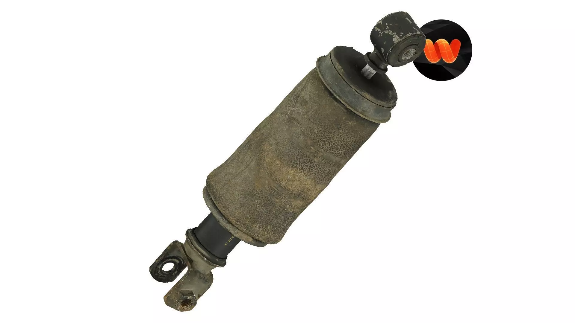 Dirty old black shock absorber. This raw 3D scanned model is indicated for those who need high detail mesh and high definition textures, allowing even extreme closeups. It is especially suitable for Films, TV, VFX, Games, VR and AR.
