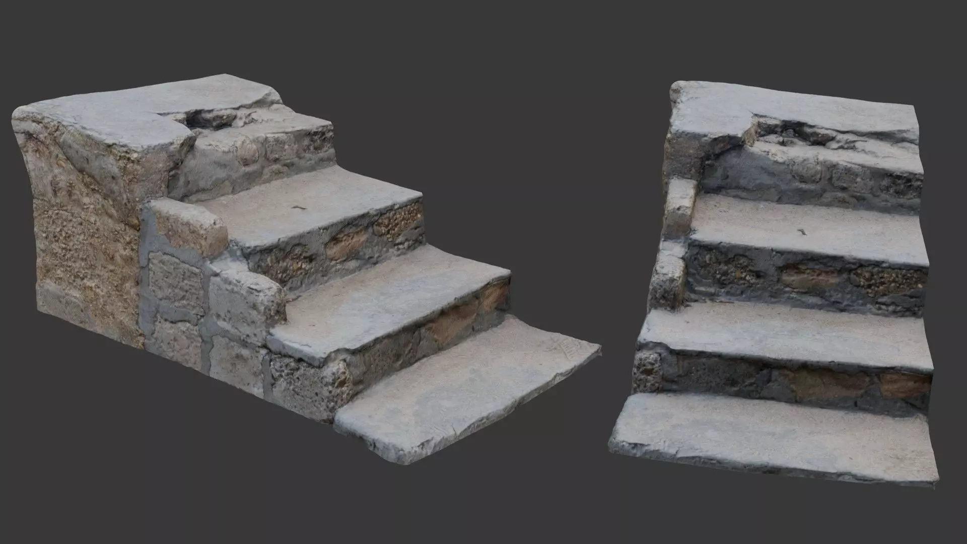 A high-quality 3D scan of an old, weathered stone staircase with realistic cracks, erosion, and aged textures. This asset is perfect for historical environments, abandoned buildings, medieval settings, and urban decay scenes. The model includes detailed 4K PBR textures capturing the natural wear and rough stone surfaces.