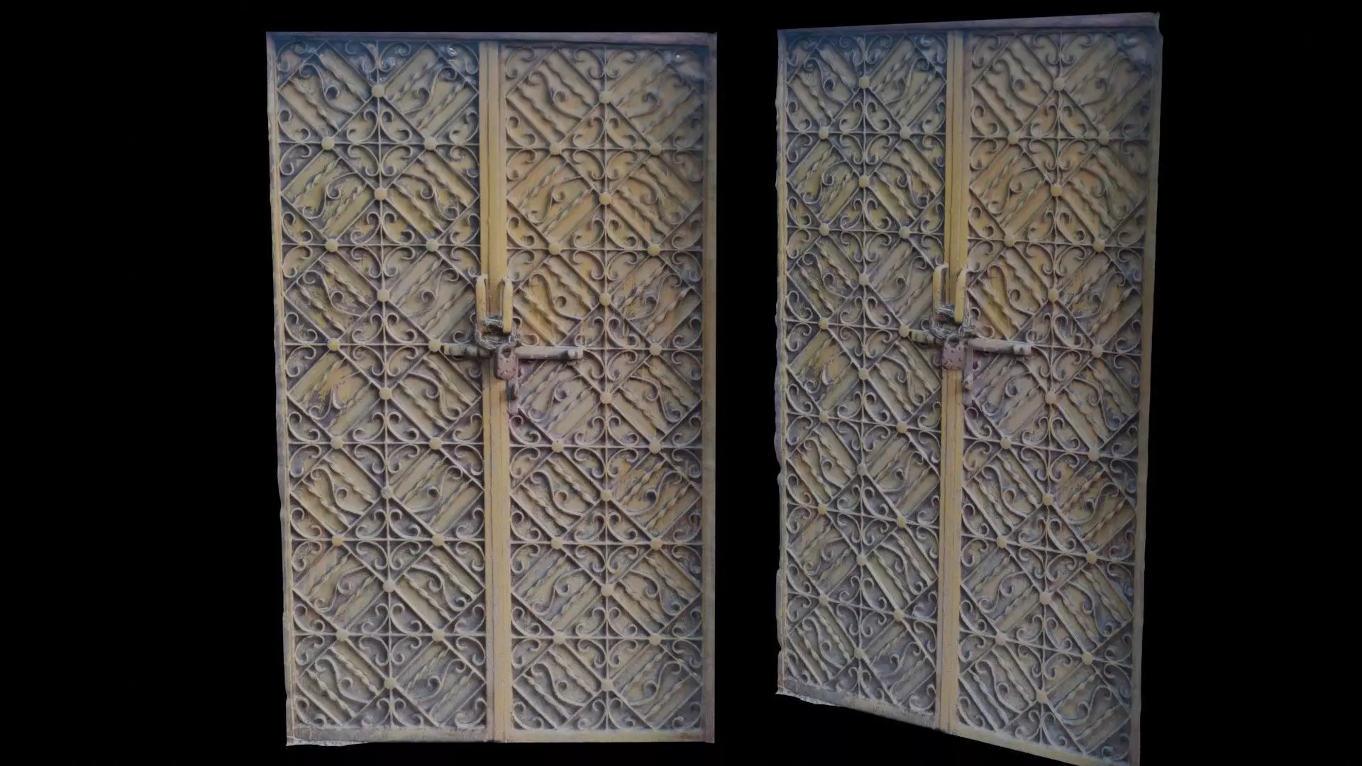 Highly detailed 3D scan of an ornate metal gate with intricate scrollwork and geometric patterns, showing signs of weathering and rust. Ideal for architectural visualization, historical settings, fantasy environments, or urban scenes. The model is provided in multiple formats (BLEND, FBX, OBJ, GLB, USD, STL) and includes 4K PBR textures for seamless integration in any pipeline.