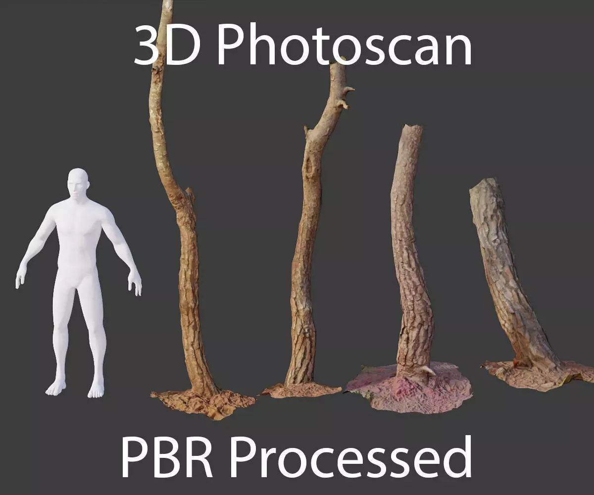 PBR Small Pine Tree Trunk Scan Set collection Low-poly 3D model