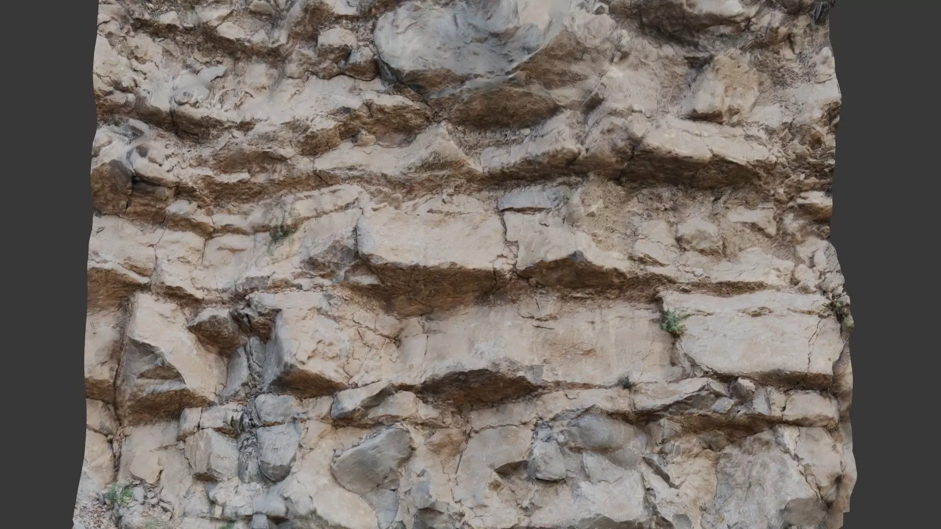 A high-resolution 3D scanned model of a rugged rock cliff face, ideal for environment design, game development, and VFX. This photogrammetry-based asset captures intricate rock details, cracks, and natural erosion for an ultra-realistic appearance.