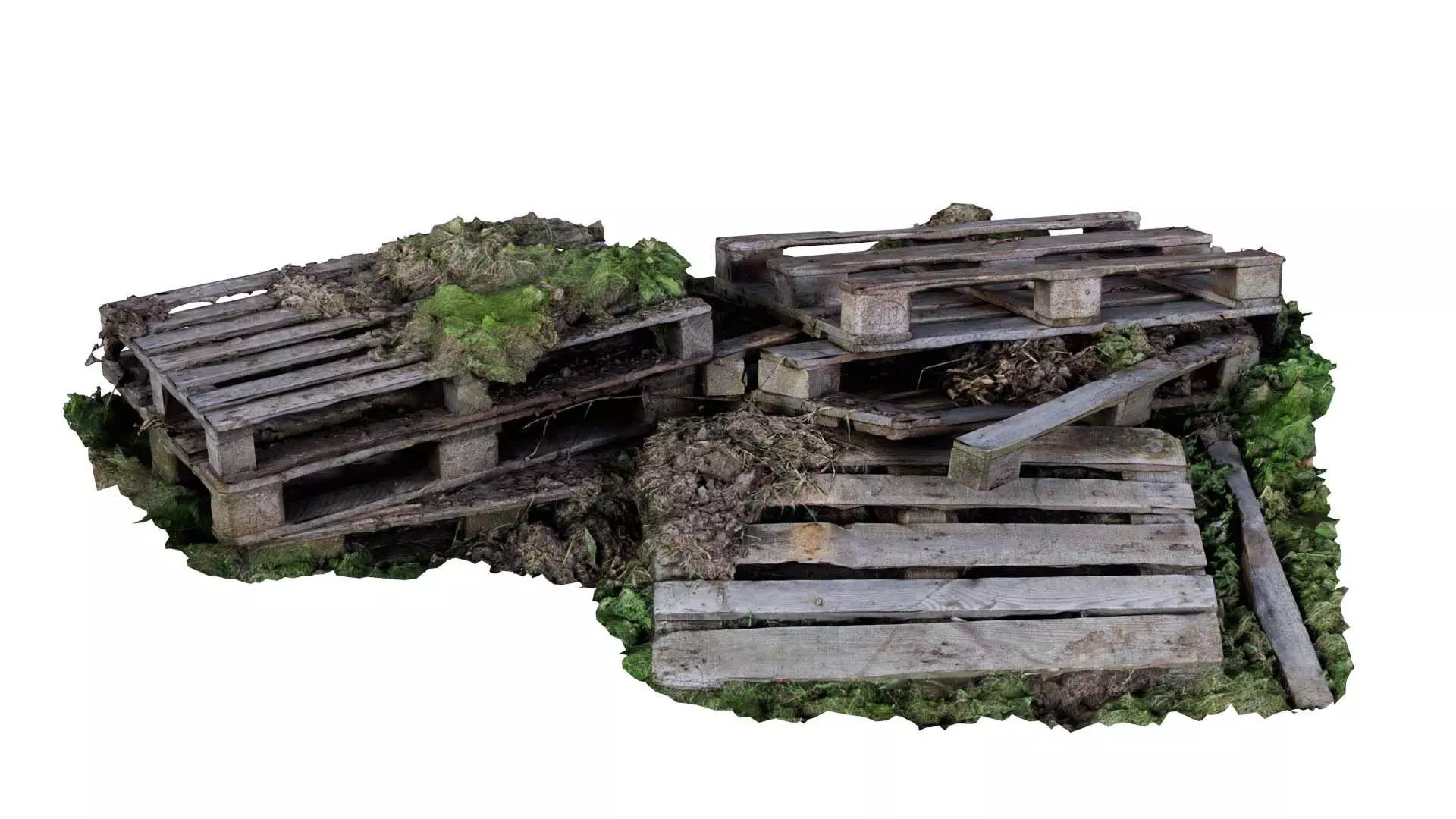3D scanned model featuring 3d model of pallets. This model, rubble 03, has been created using photogrammetry from a real world object.The raw scan data has been cleaned, retopologized and UV-unwrapped using Zbrush. The result is a low poly mesh with baked maps. The .obj and .mtl are configured so that maps will load automatically in the shader (tested in Blender). In addition, a Blender scene is provided with the model and shader already set up for rendering and export. Detailed information below: