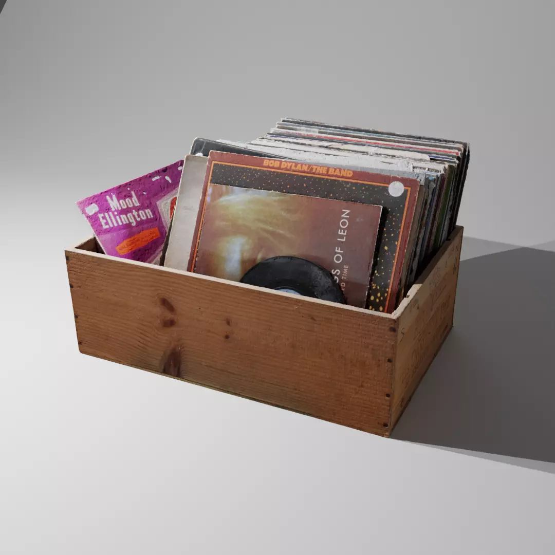 Excellent quality san of a box of vinyl records scanned with photogrammetry.