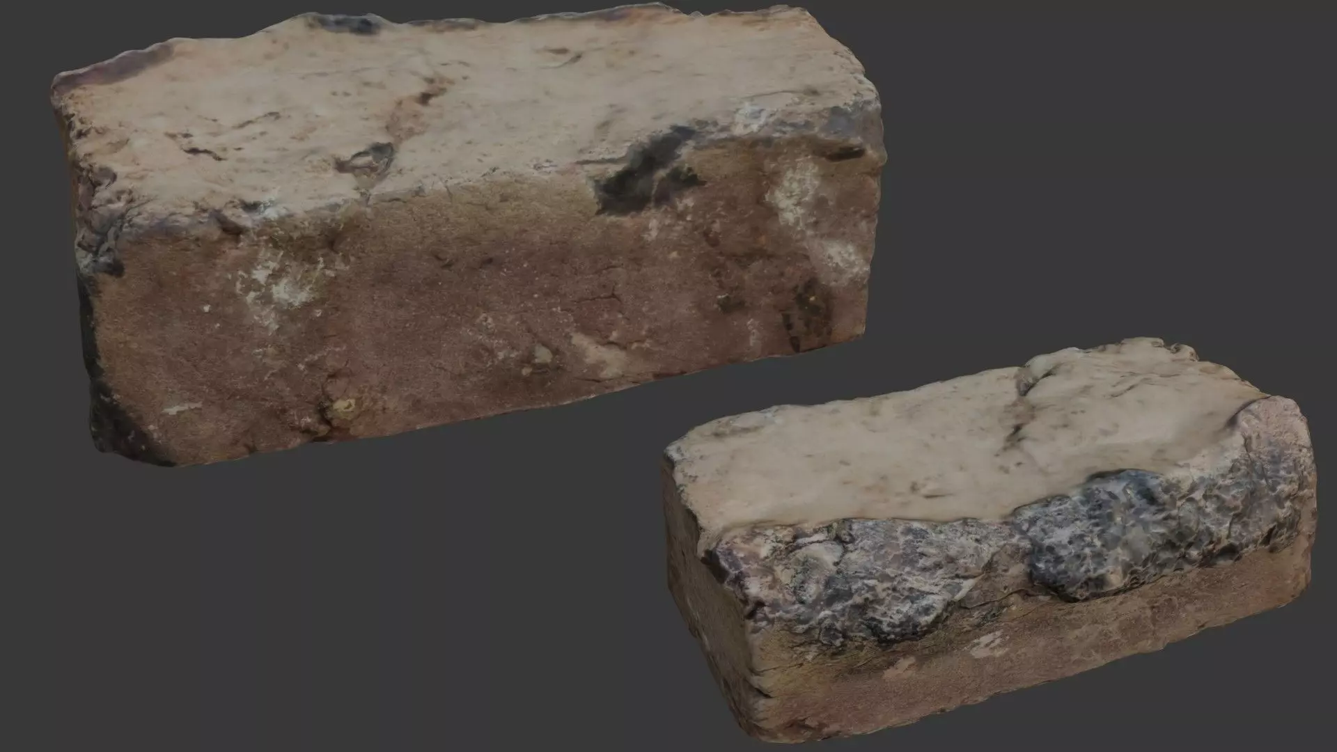 Highly detailed 3D scan of a weathered stone block with visible damage, rugged textures, and a dark, mossy patch on its surface. Ideal for creating realistic rock piles, ground scatter, fantasy ruins, or architectural debris. The model is provided in multiple formats (BLEND, FBX, OBJ, GLB, USD, STL) and includes 4K PBR textures for seamless integration in any pipeline.