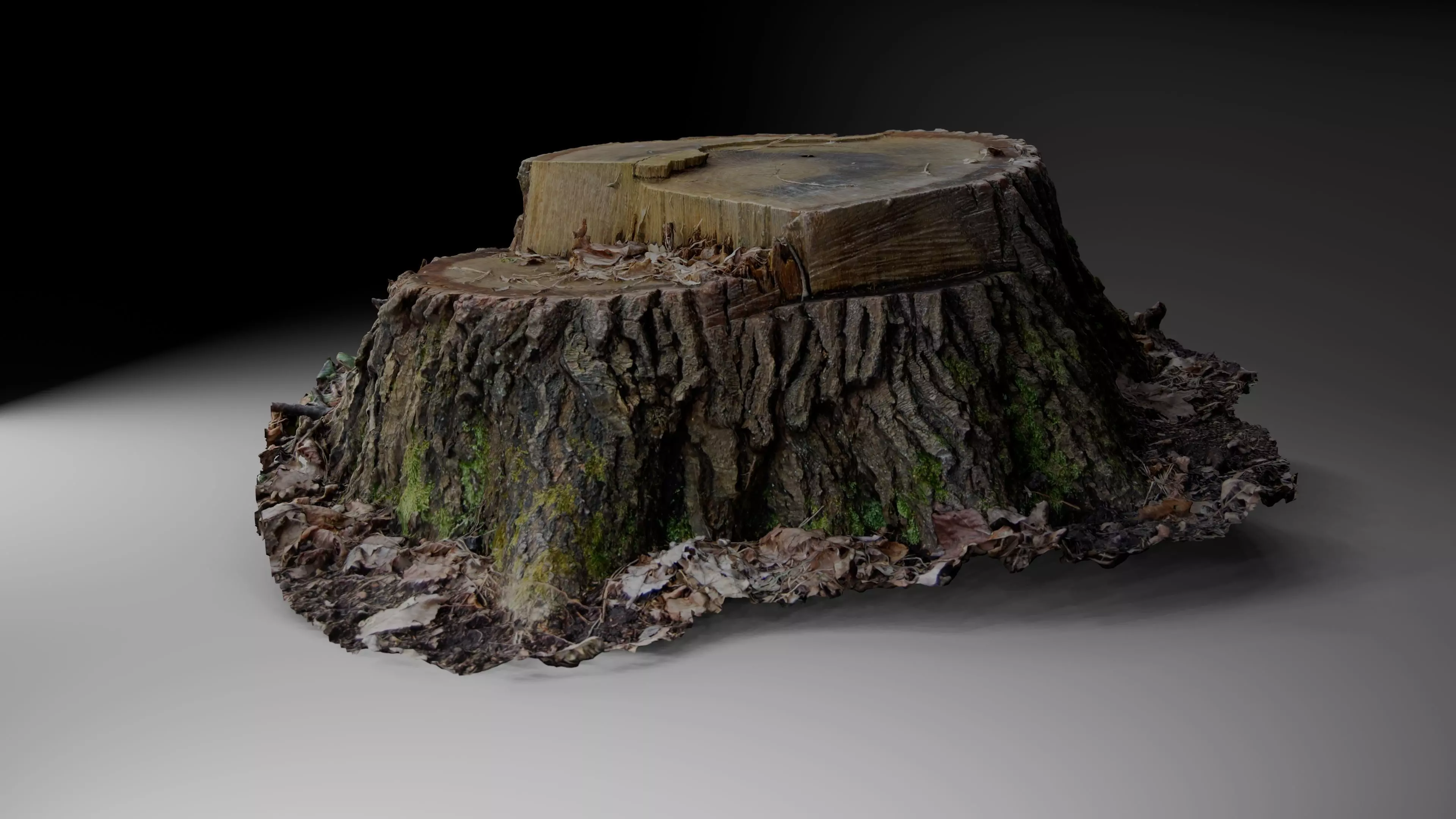 A scanned tree stump was found surrounded by leaves in the forest. This is a very high poly model so I added additional models with a lower poly count so that more people could use it and it would be easier to use.