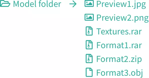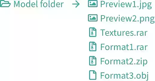 The model includes image files (textures) that add color, patterns, or detail to its surfaces.