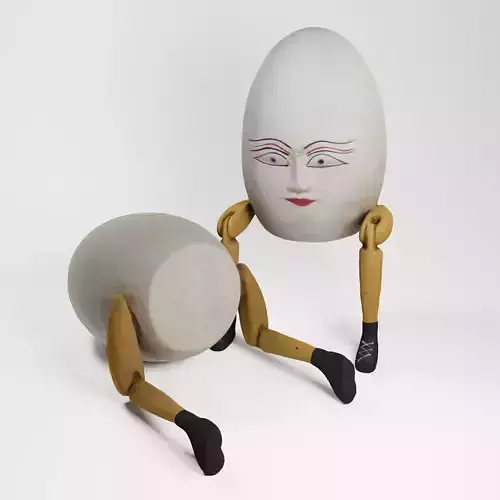 High quality scanned model of a sitting wooden Humpty Dumpty figure to add more details and realism to your rendering projects.