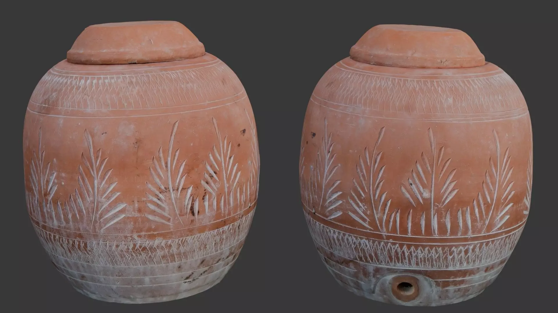 High-resolution 3D scan of a traditional terracotta water jar with decorative carvings. The intricate surface details make it ideal for cultural, historical, or environment-based projects. The model is provided in multiple formats (BLEND, FBX, OBJ, STL, GLB, USD) and includes 4K PBR textures, ensuring compatibility across any pipeline.