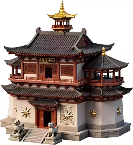 Transform your digital landscape with the timeless grandeur of this Traditional Chinese Pagoda Temple. This high-fidelity 3D asset is meticulously designed for professional architectural visualization, cinematic historical renders, and AAA fantasy game environments. The model captures the majestic Empire Aesthetic of 2026, featuring multi-tiered curved roofs with realistic gray tiles, vibrant red wooden balconies, and detailed guardian lion statues at the entrance. Aligned with the trend for Tactile Urbanism, the asset emphasizes material authenticity, from the weathered stone base to the ornate gold-topped central pavilion.