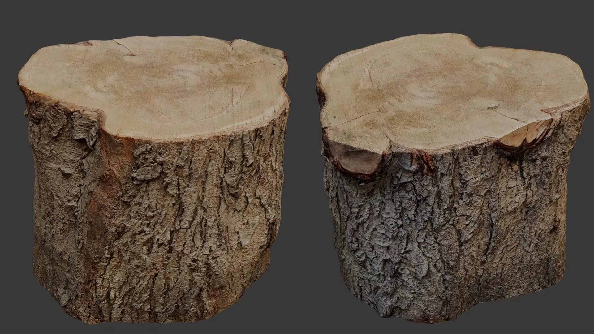 Realistic 3D scan of a tree stump with highly detailed bark and natural wood grain. Perfect for game environments, nature scenes, VFX, and architectural visualization. The model features organic textures, visible growth rings, and rough bark, making it ideal for photorealistic rendering.