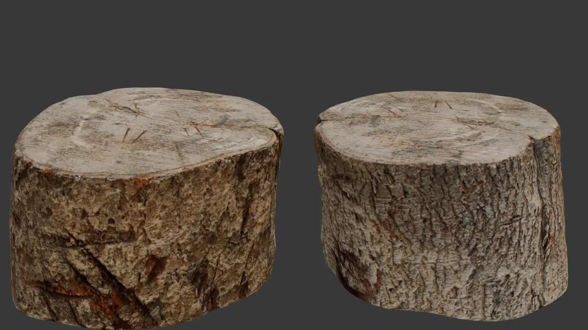 High-quality 3D scan of a realistic tree stump with detailed bark and natural surface imperfections. This photorealistic model captures the rough texture, wood grain, and organic details of a freshly cut tree trunk. Perfect for use in forest environments, nature scenes, game assets, and architectural visualizations.