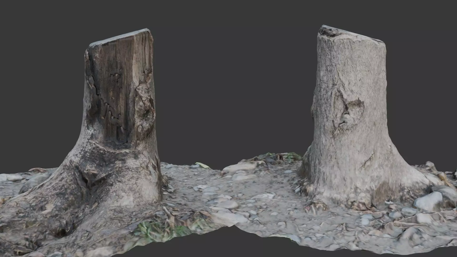 A highly detailed 3D scanned tree stump with natural textures, ideal for forest scenes, nature renders, and game environments. This photorealistic asset captures organic details, from bark texture to ground debris, ensuring a high level of realism.