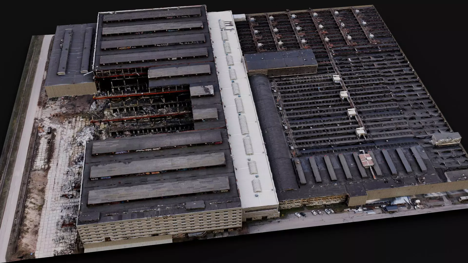 warehouse facility damaged building roof model photogrammetry Low-poly 3D model