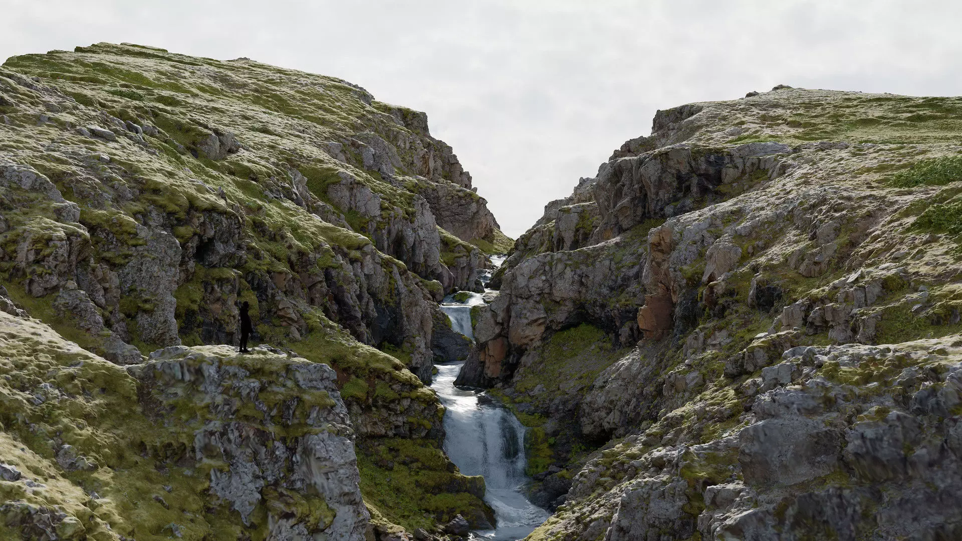 This detailed 3D scan of an Icelandic waterfall cliffs, was captured in neutral lighting to ensure accurate surface detail and realistic color tones. The model has been carefully cleaned, decimated, and optimized for both real-time and offline rendering workflows