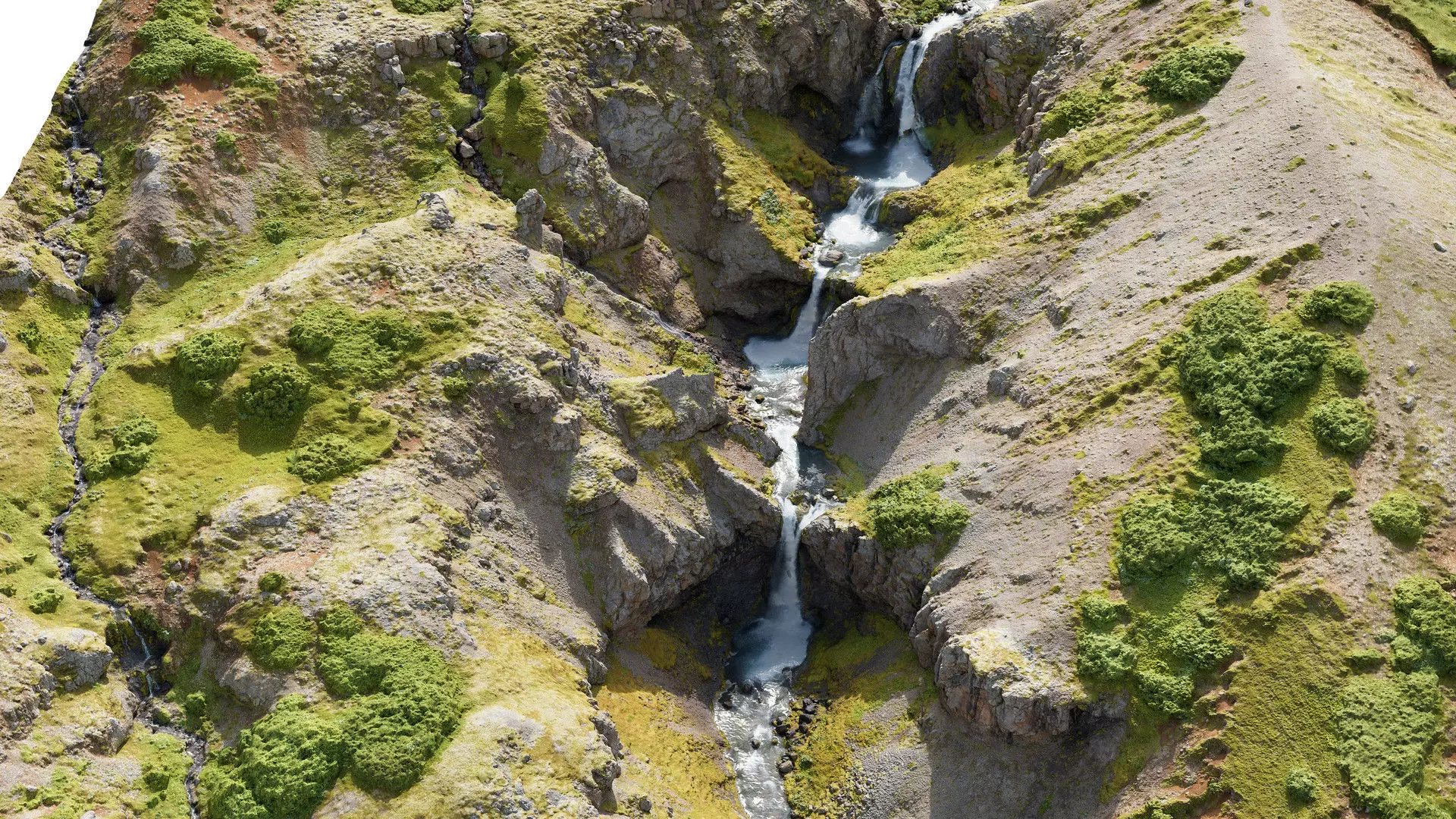 This detailed 3D scan of an Icelandic waterfall cliffs, was captured in neutral lighting to ensure accurate surface detail and realistic color tones. The model has been carefully cleaned, decimated, and optimized for both real-time and offline rendering workflows