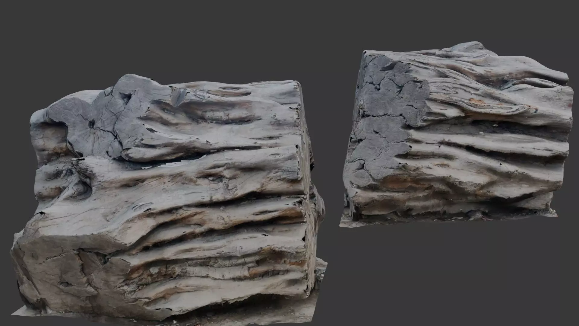 High-quality 3D scan of a naturally weathered wood block featuring deep grooves, cracks, and organic surface details. This photorealistic asset is ideal for nature scenes, game environments, and CGI projects requiring realistic wooden textures. Its detailed structure makes it perfect for close-up renders, architectural visualization, and virtual reality applications.