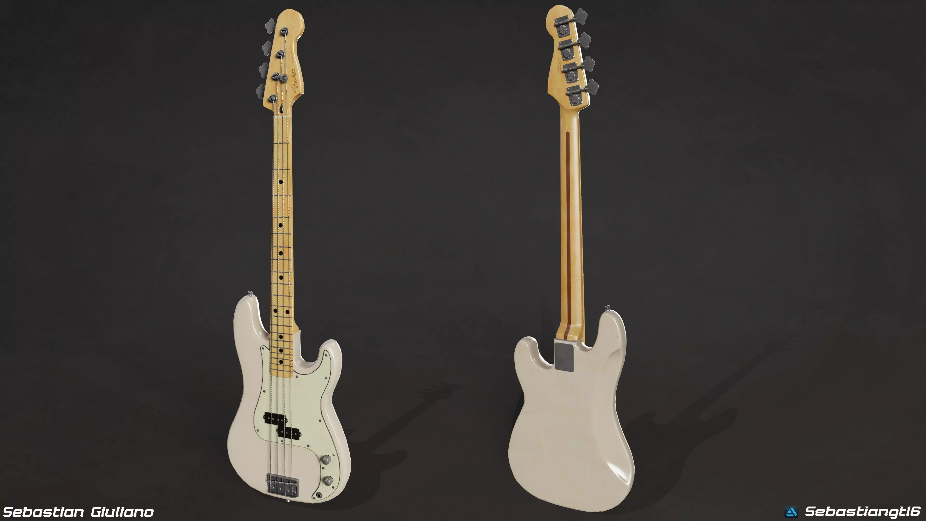 It features clean topology, realistic materials, and a detailed texture set at 4K resolution. The model includes all standard elements of a bass guitar and is fully optimized for real-time performance.