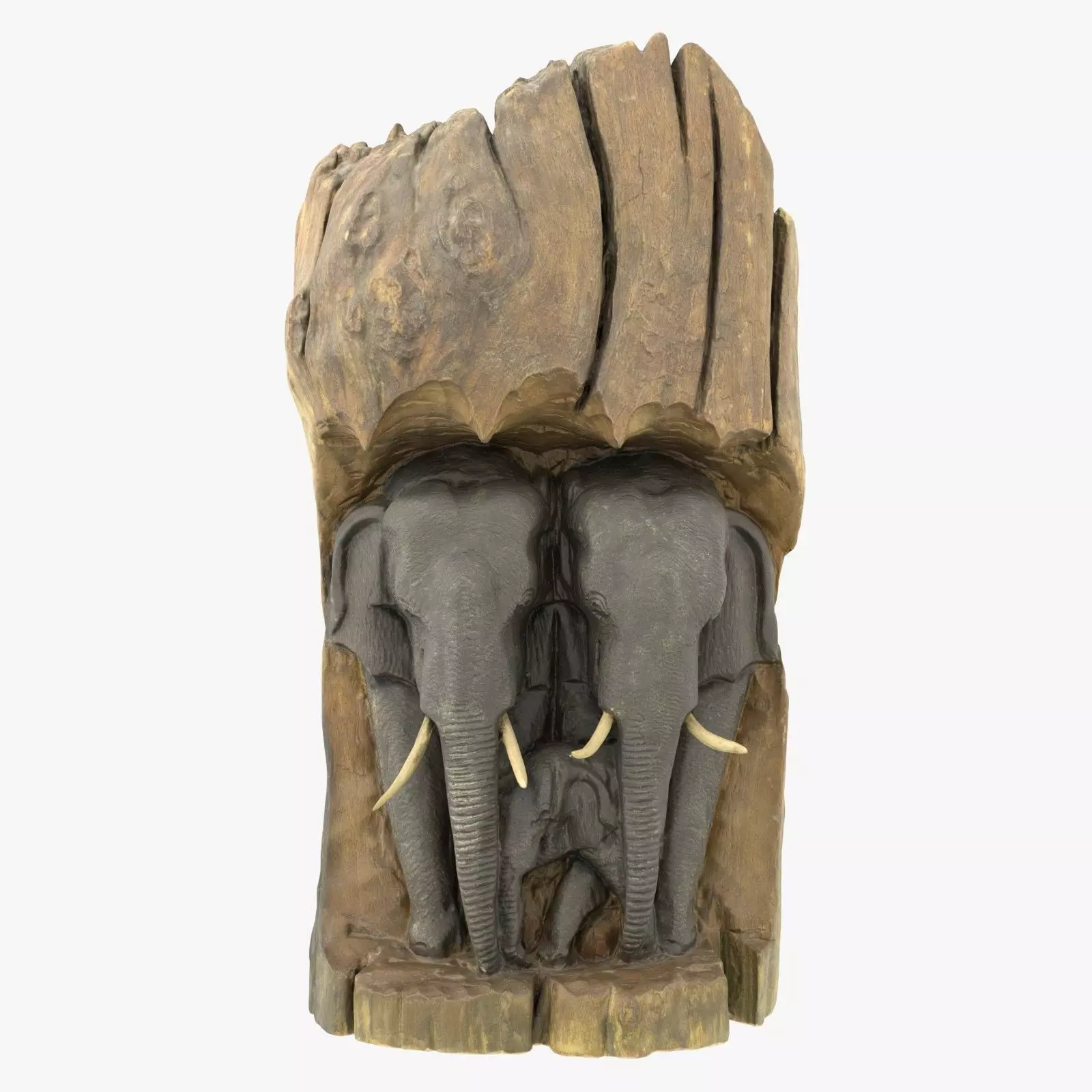 Beautiful wooden carving from India. The model in the previews has a 4K Basecolor, Roughness- and Normal map. The original 8K and a 2K textureset (including an Ambient Occlusion map) is included as well. The model was photoscanned with around 200 photos in a phototent with lightboxes. Normalmap and AO map baking was done in Blender and the Roughness map was created with Substance.
