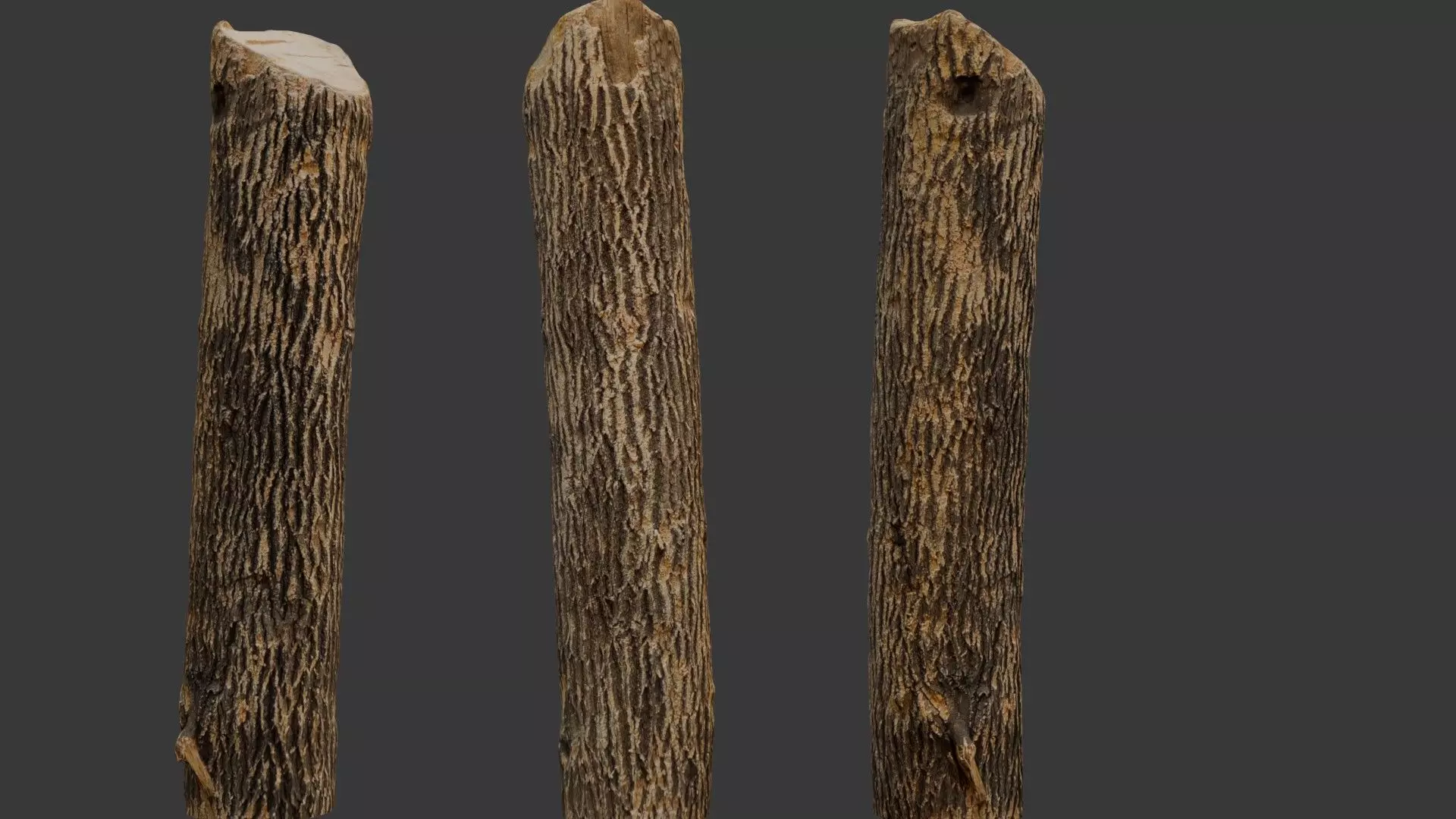 Highly detailed 3D scan of a realistic wooden post with intricate bark texture and a naturally weathered surface. This model captures the organic details of aged wood, making it ideal for use in outdoor environments, rustic scenes, game assets, and architectural visualizations.