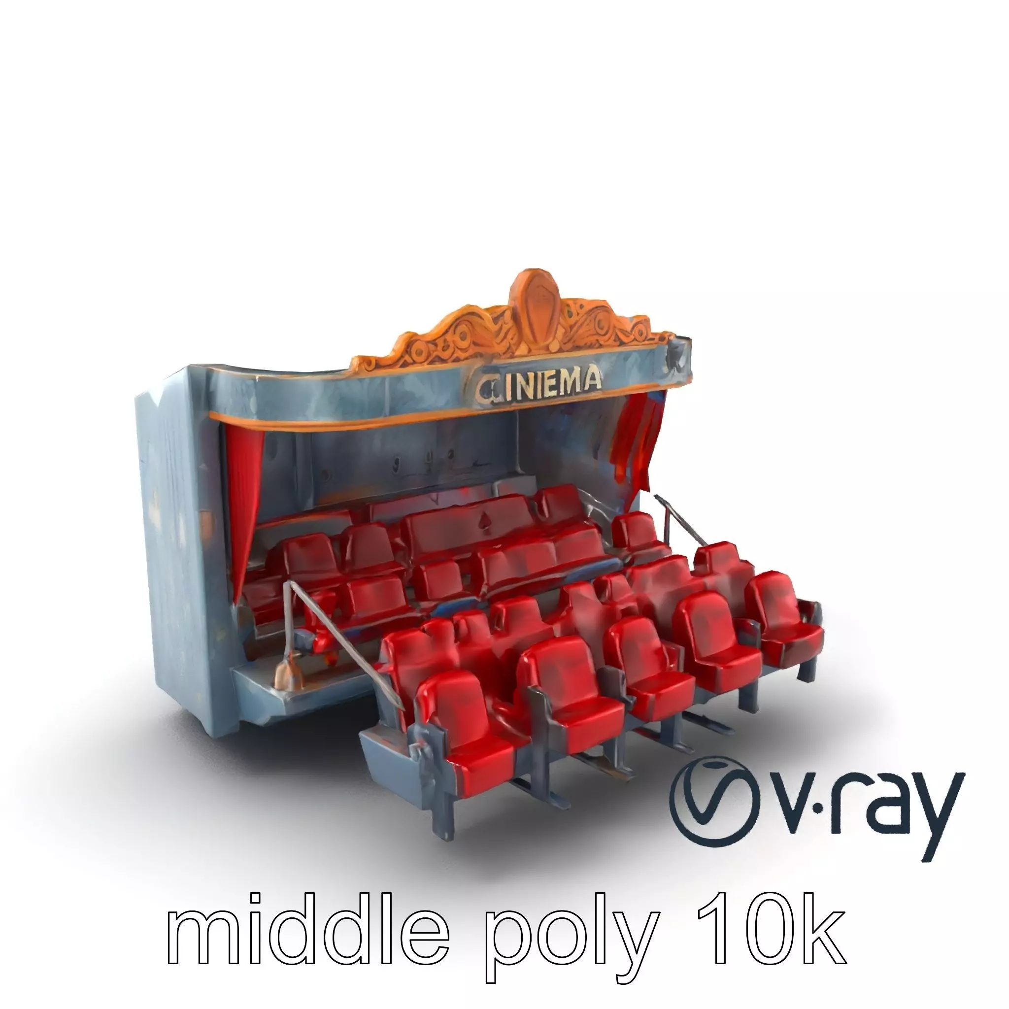 Wrecked Cinema Theater Ruins model pack Low-poly 3D model